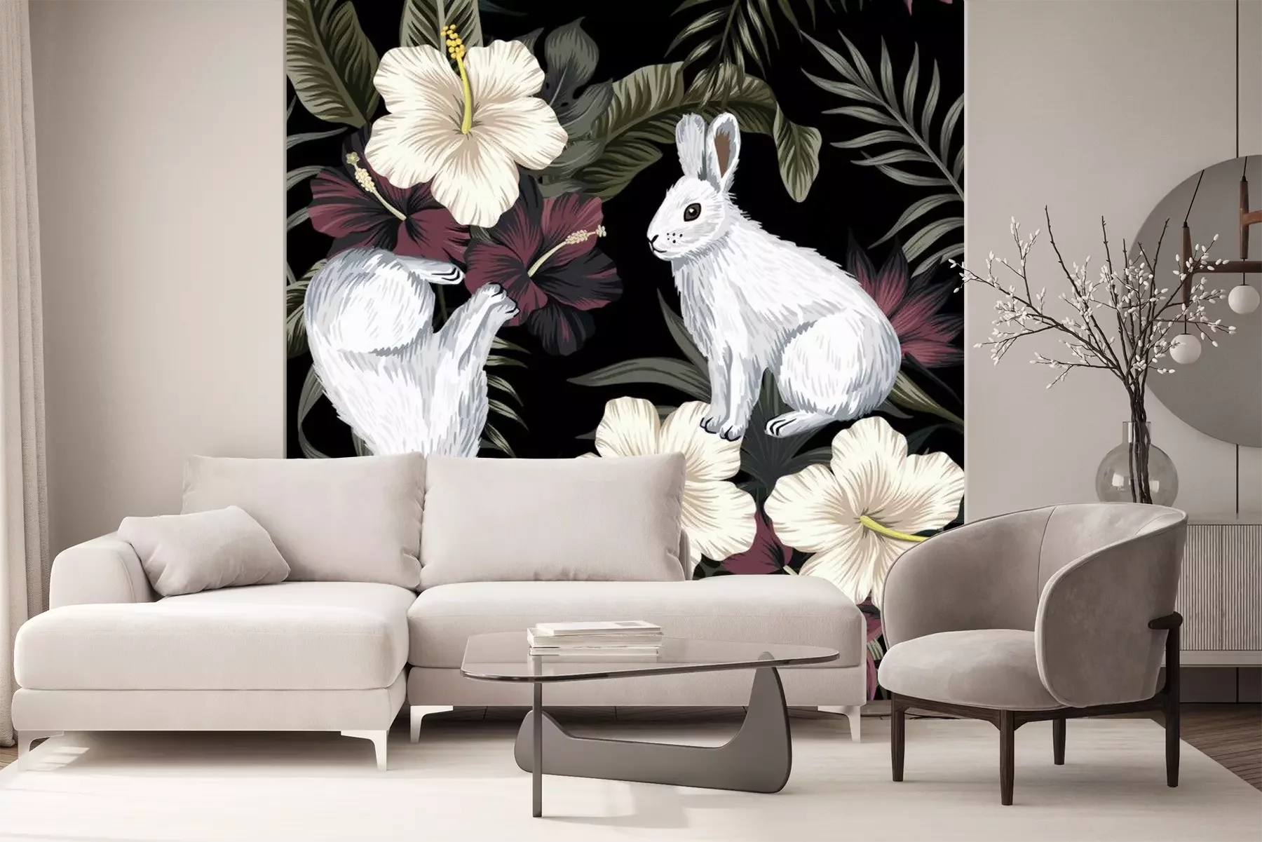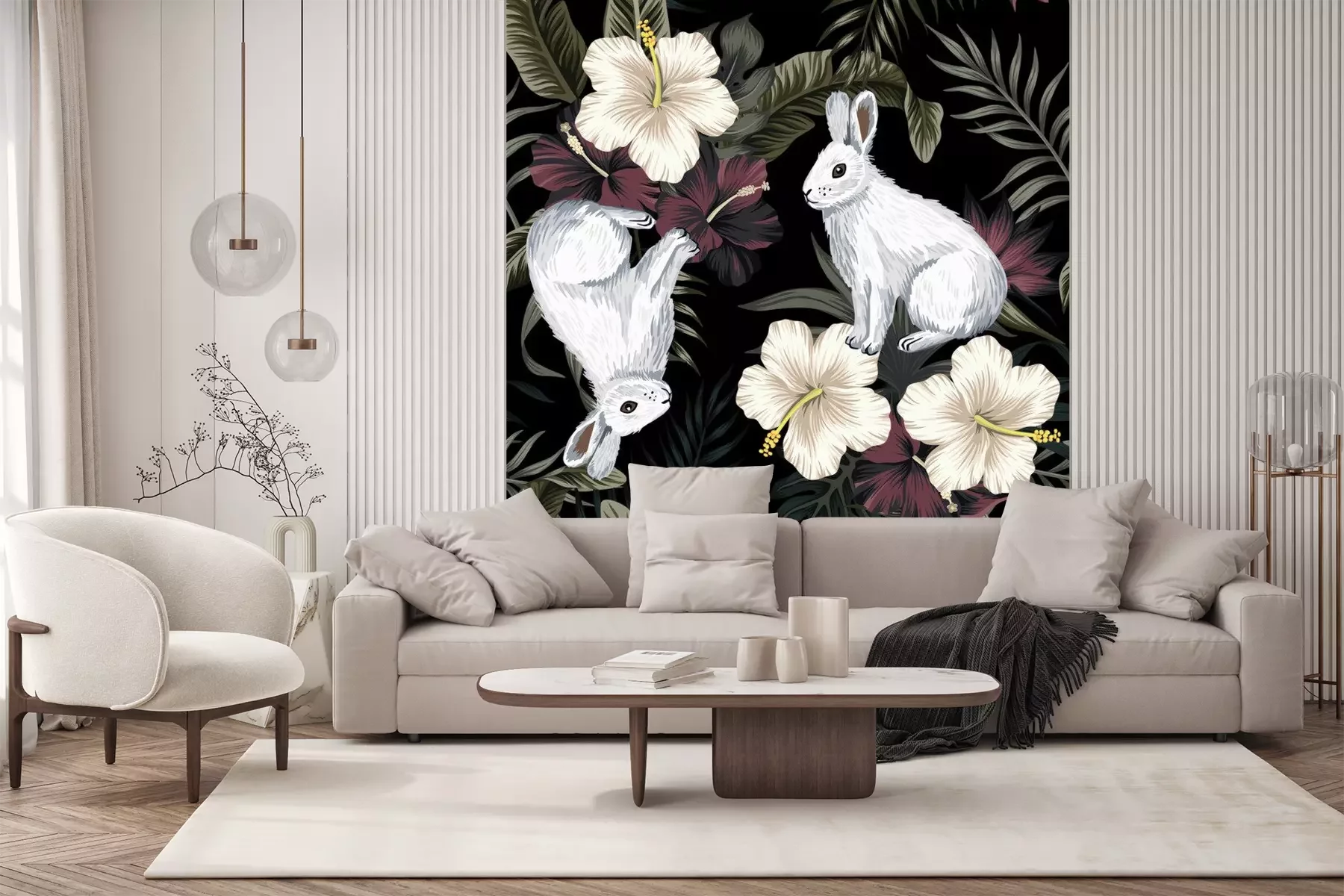 Palmenblätter auf leicht grauem HintergrundFototapete