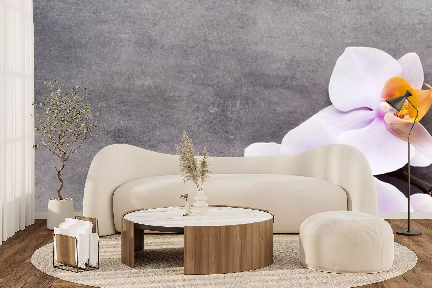 Orchidee auf BetonhintergrundProblemlose Lieferung durch vertrauenswürdige Spediteure
