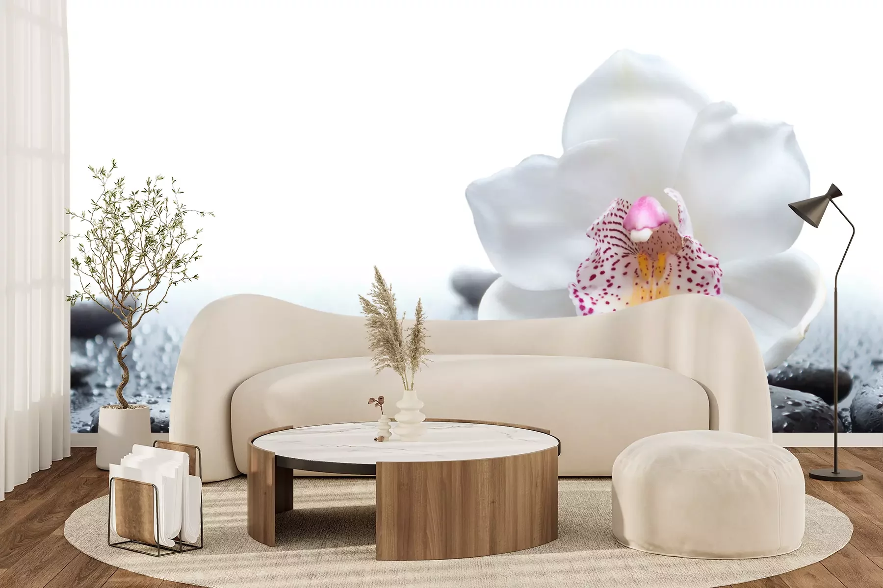 Komposition von Orchidee Steinen und BambusFototapete