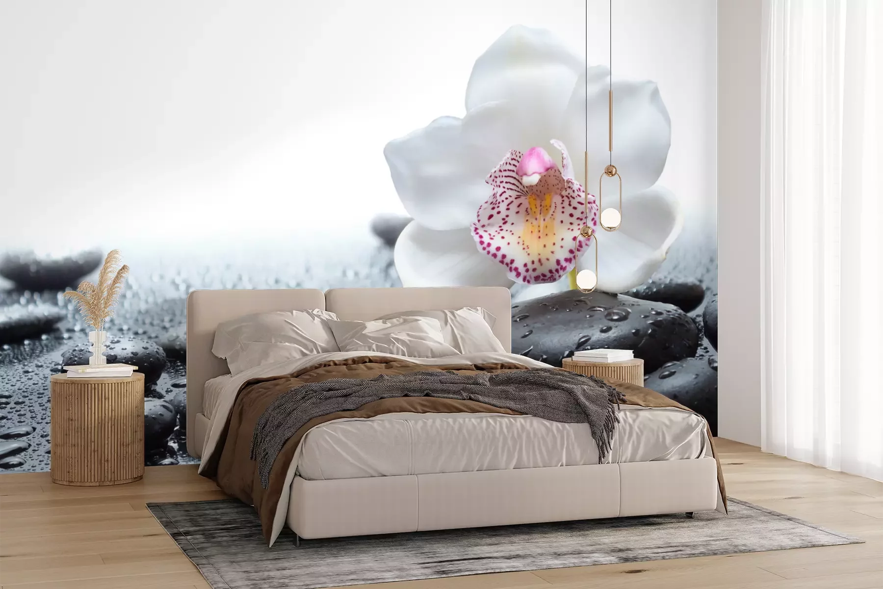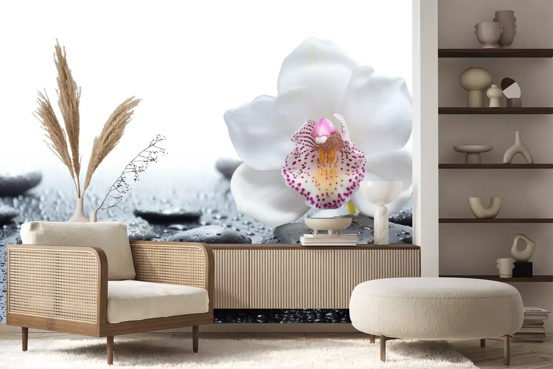 Grün Steine und OrchideenFototapete