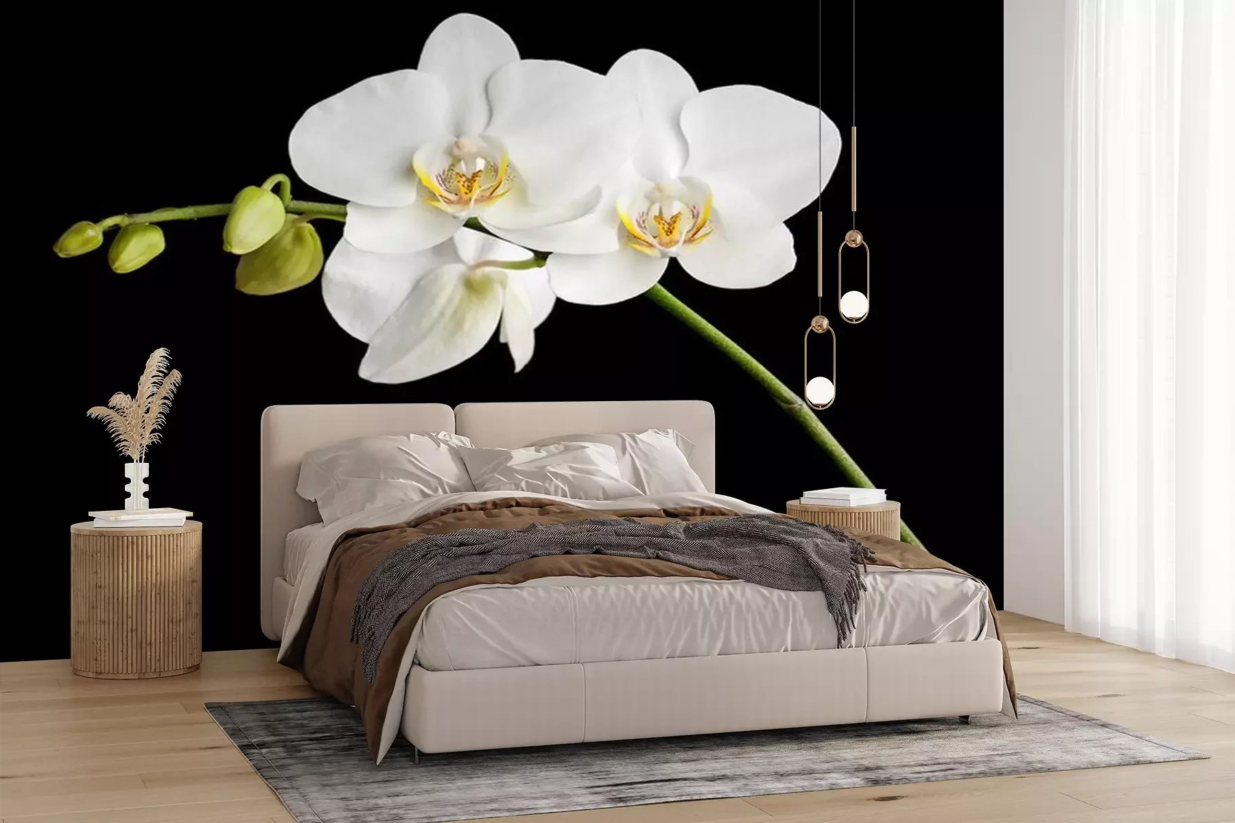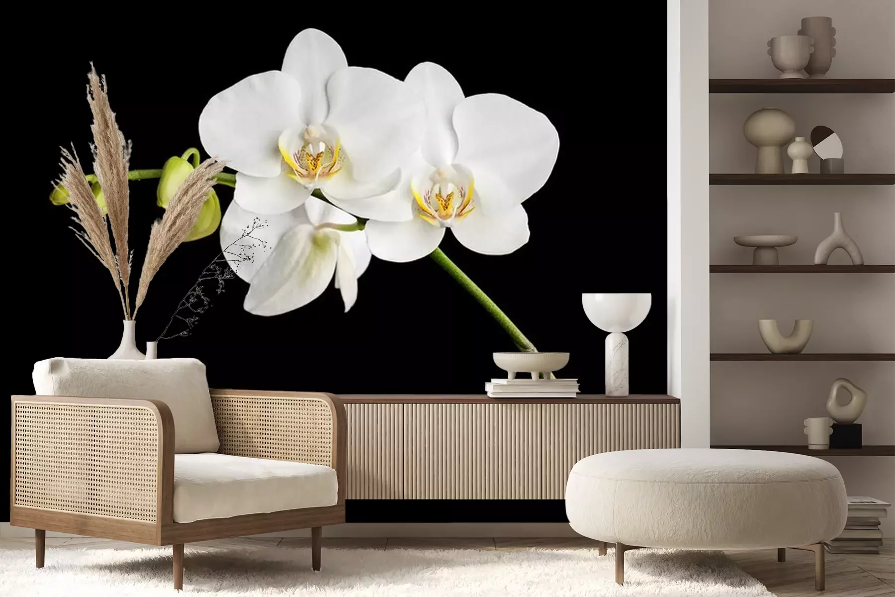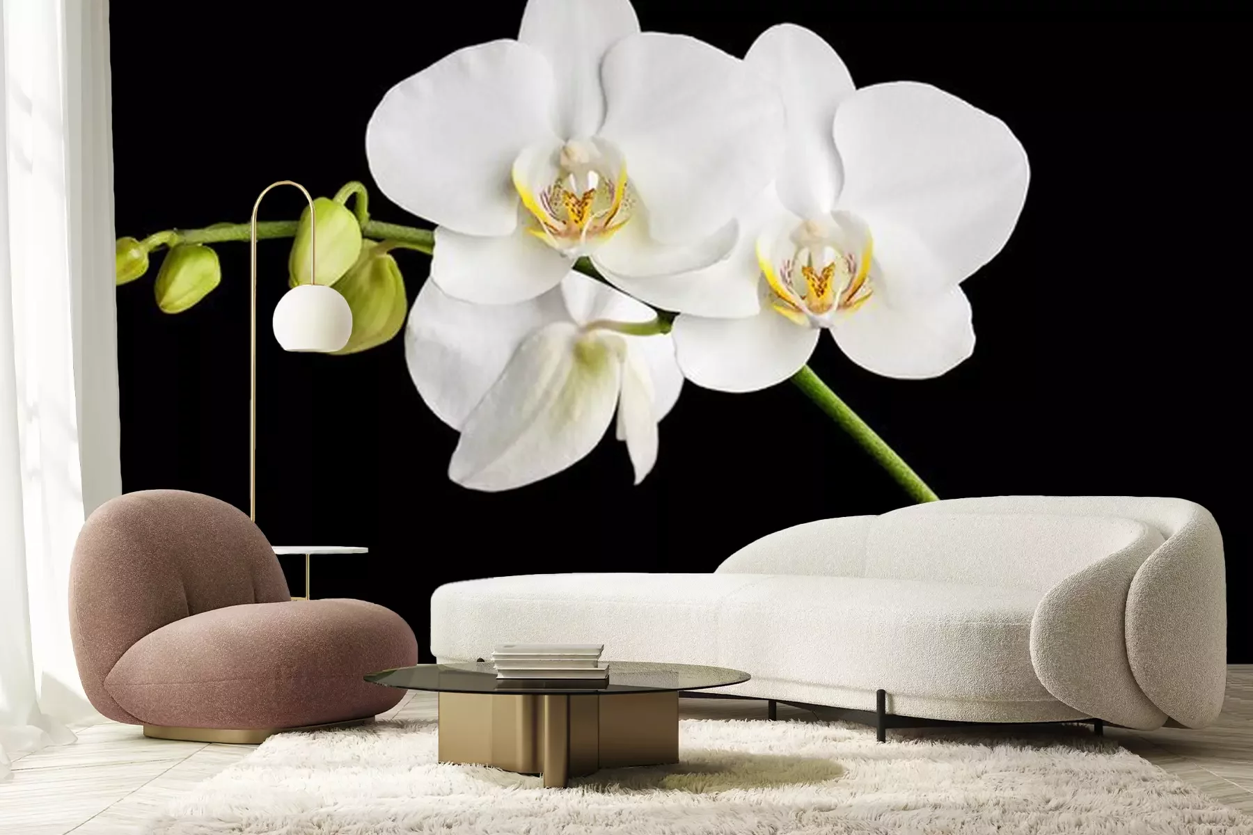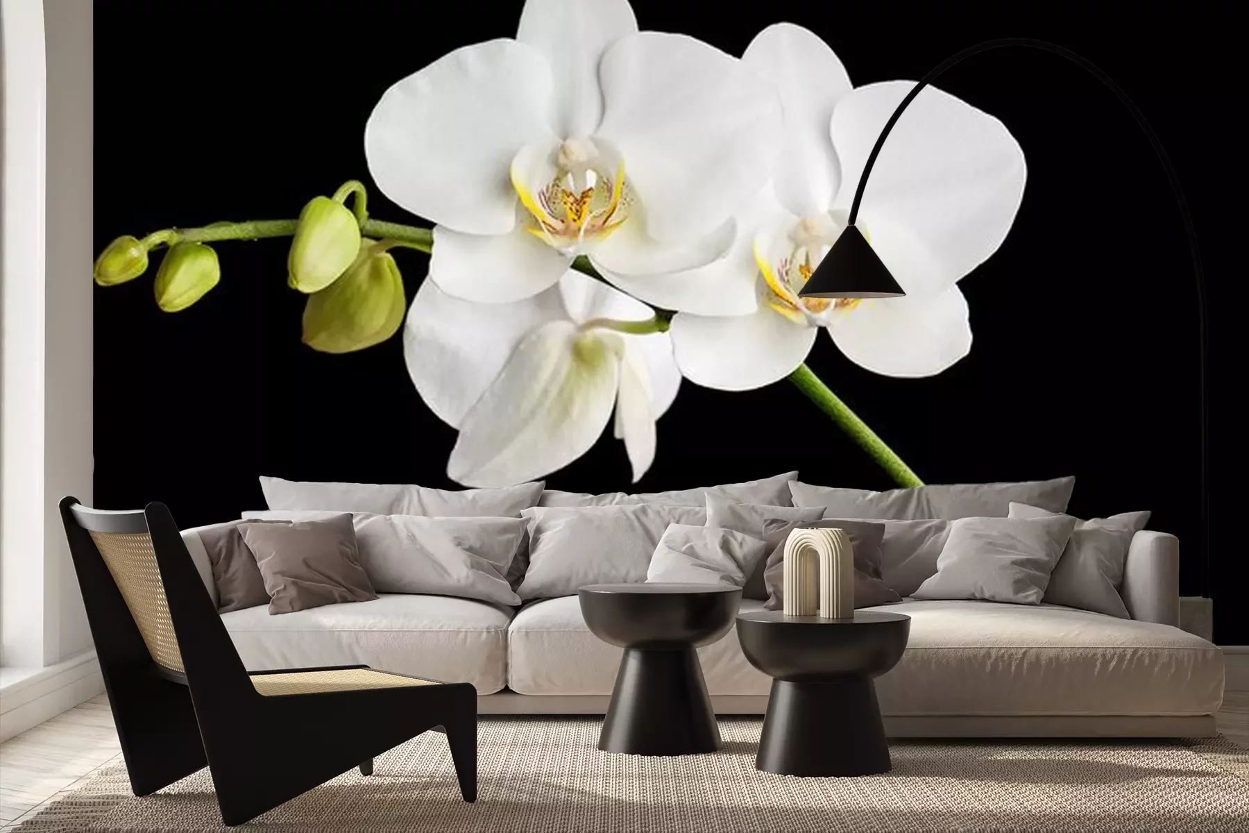 Sticker Weiße tropische Blumen auf schwarzem Hintergrund