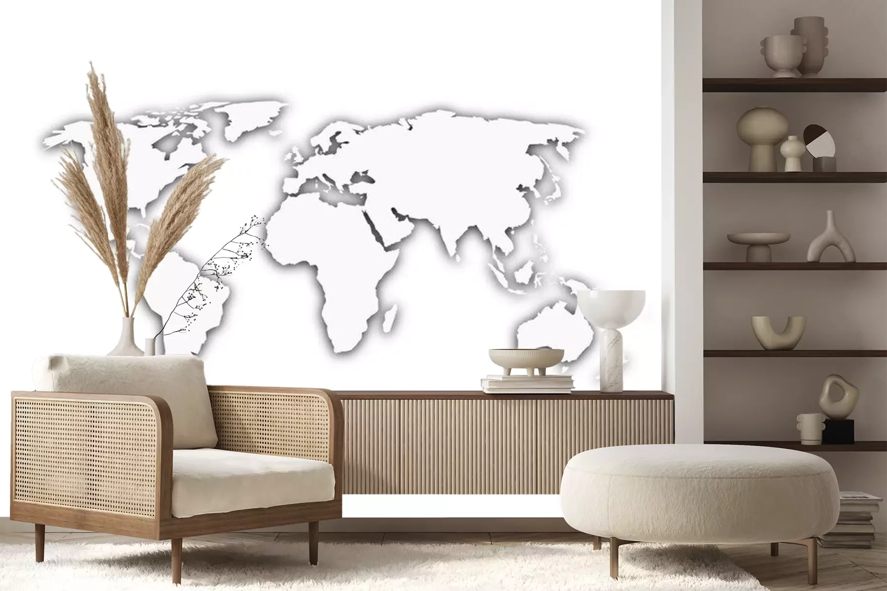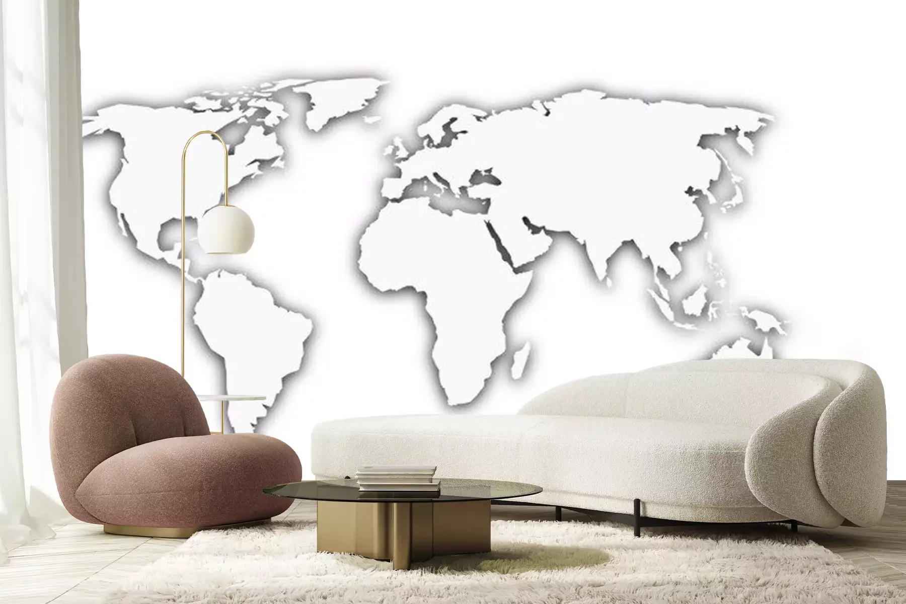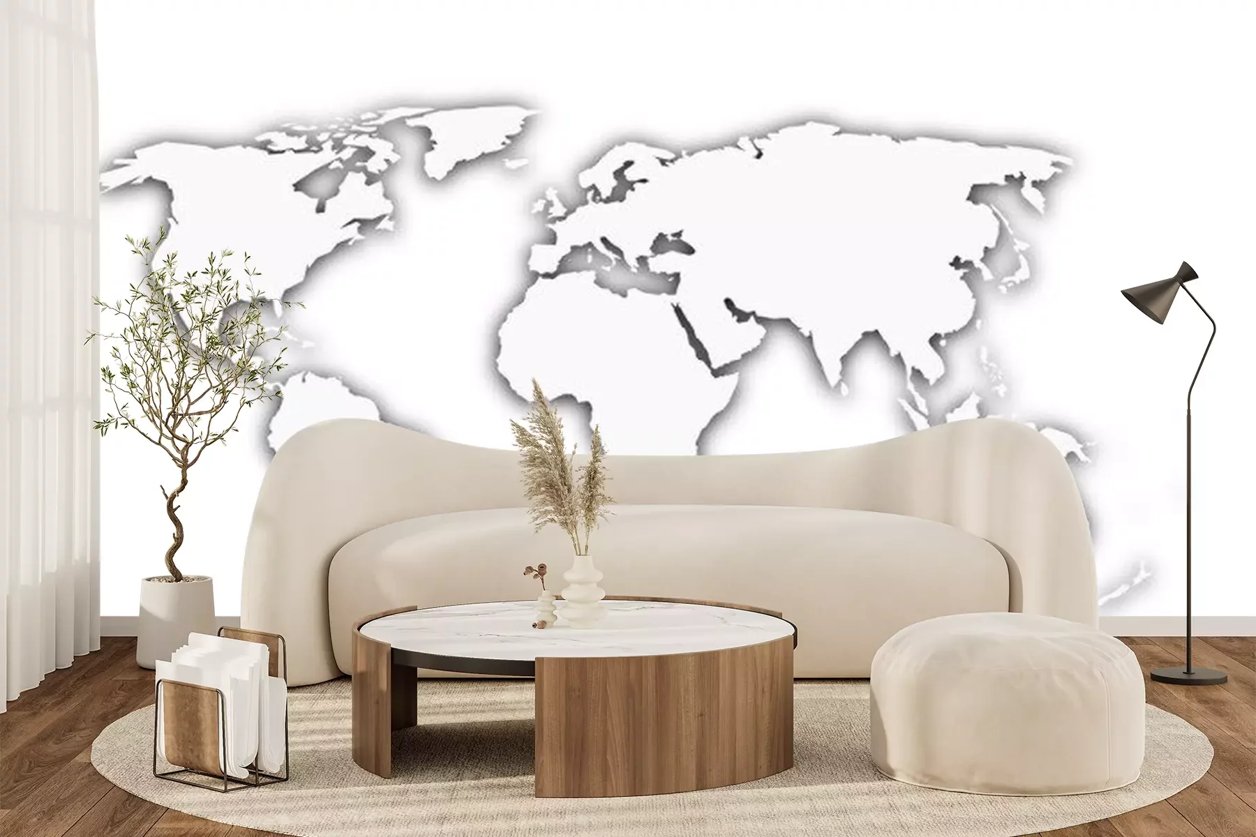 Sticker Weiße Weltkarte mit Schatten Silhouette
