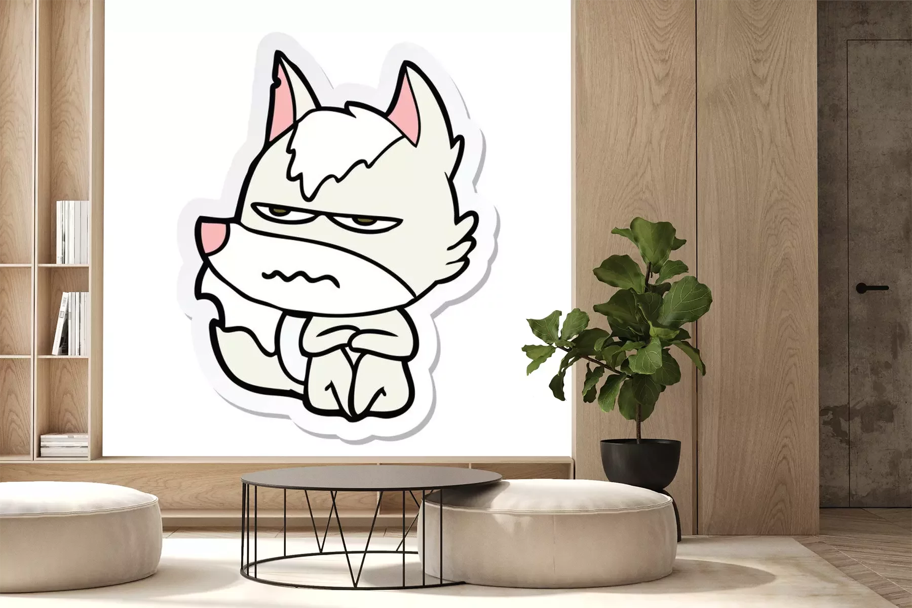 Sticker Weißer Wolf mit zusammengekniffenen Augen Grafik