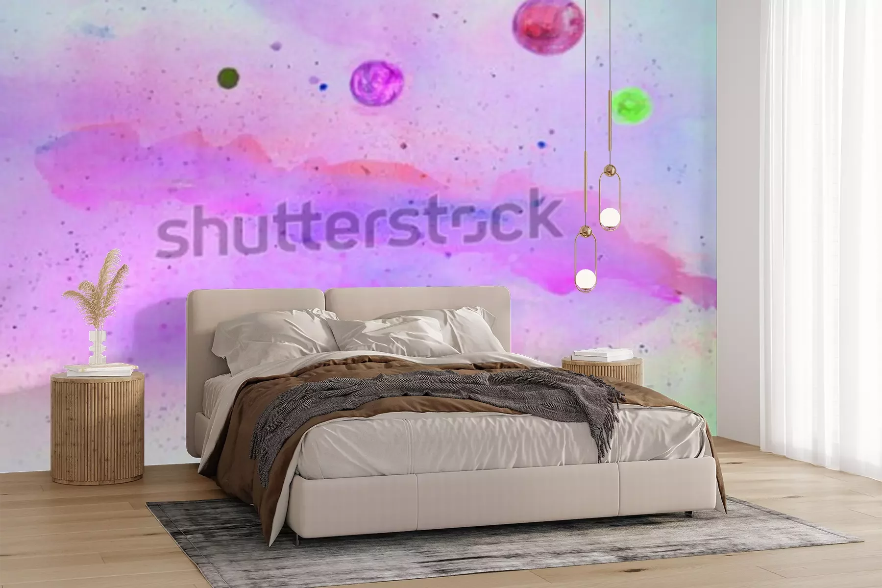 Sticker Weltraum in Rosa Aquarell-Illustration