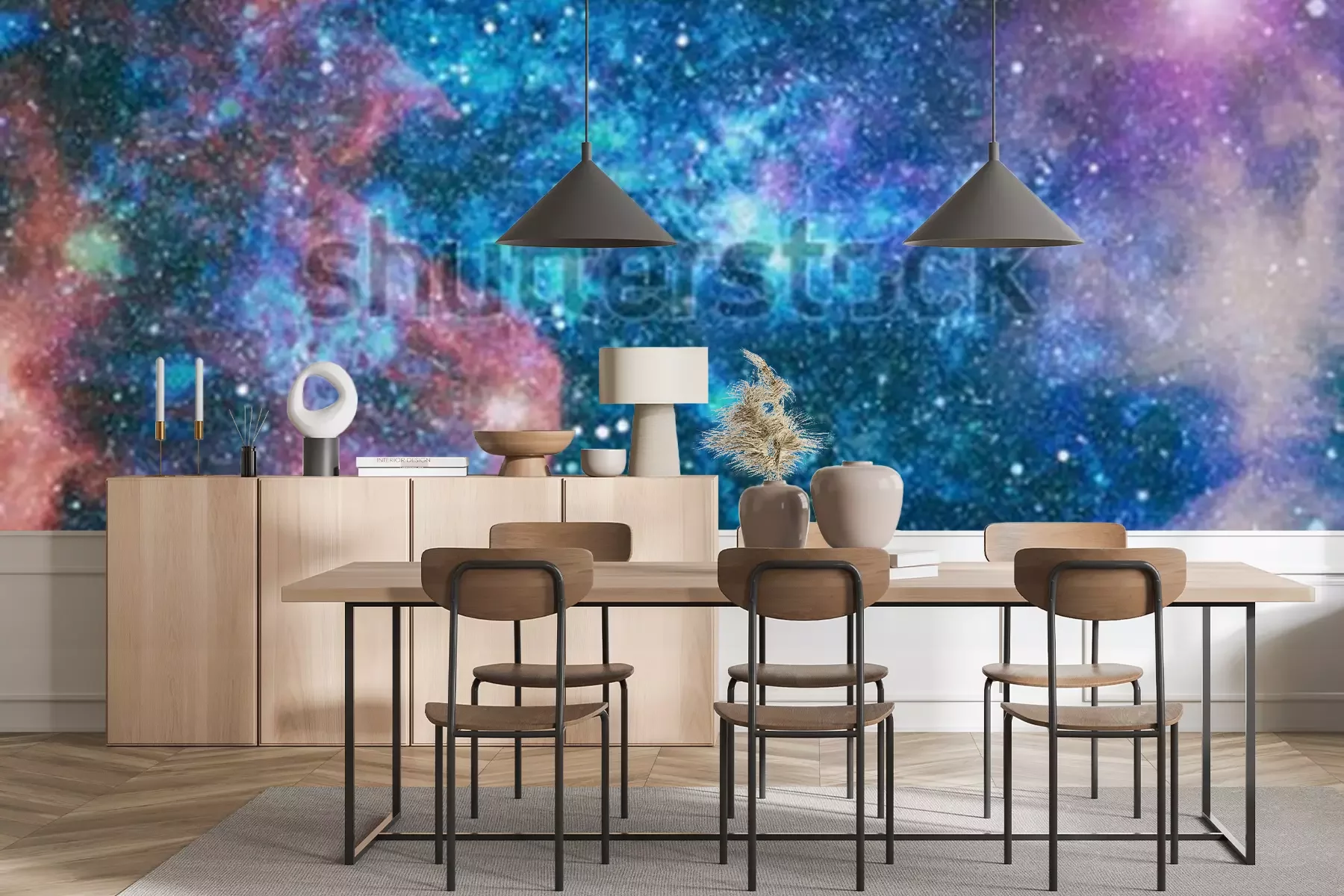 Sticker Weltraum in rosa-blauer Pastell-Farbgebung