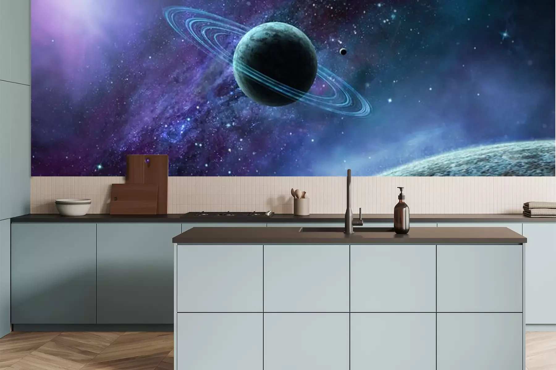 Weltraum und Planeten in BlauPoster