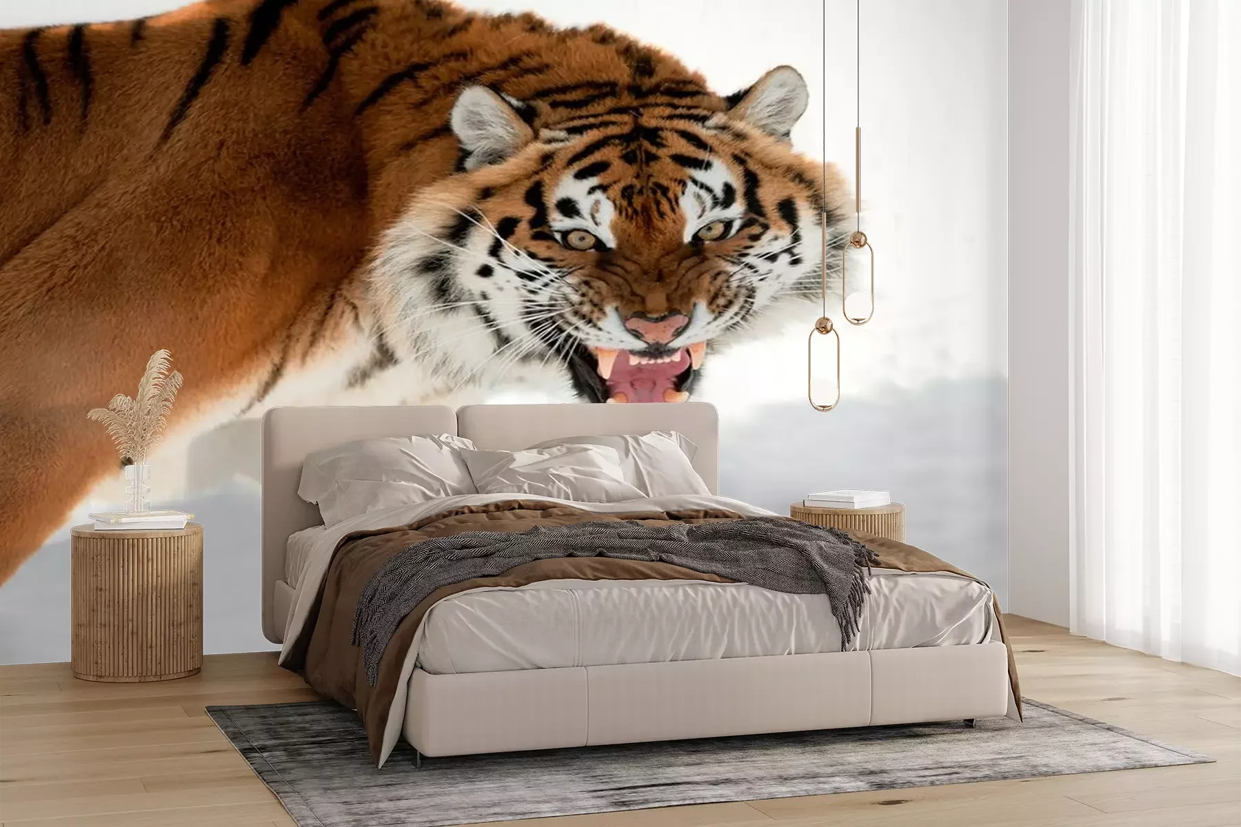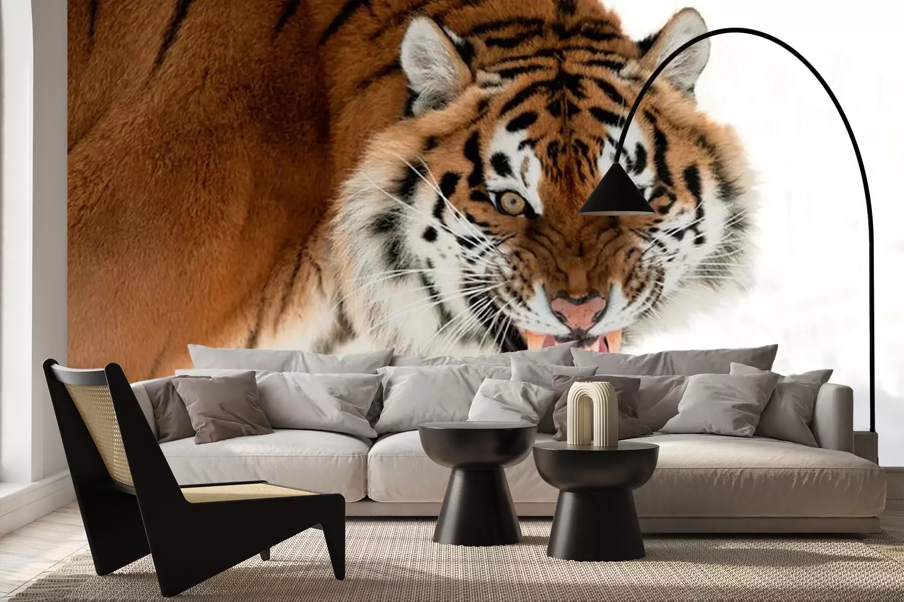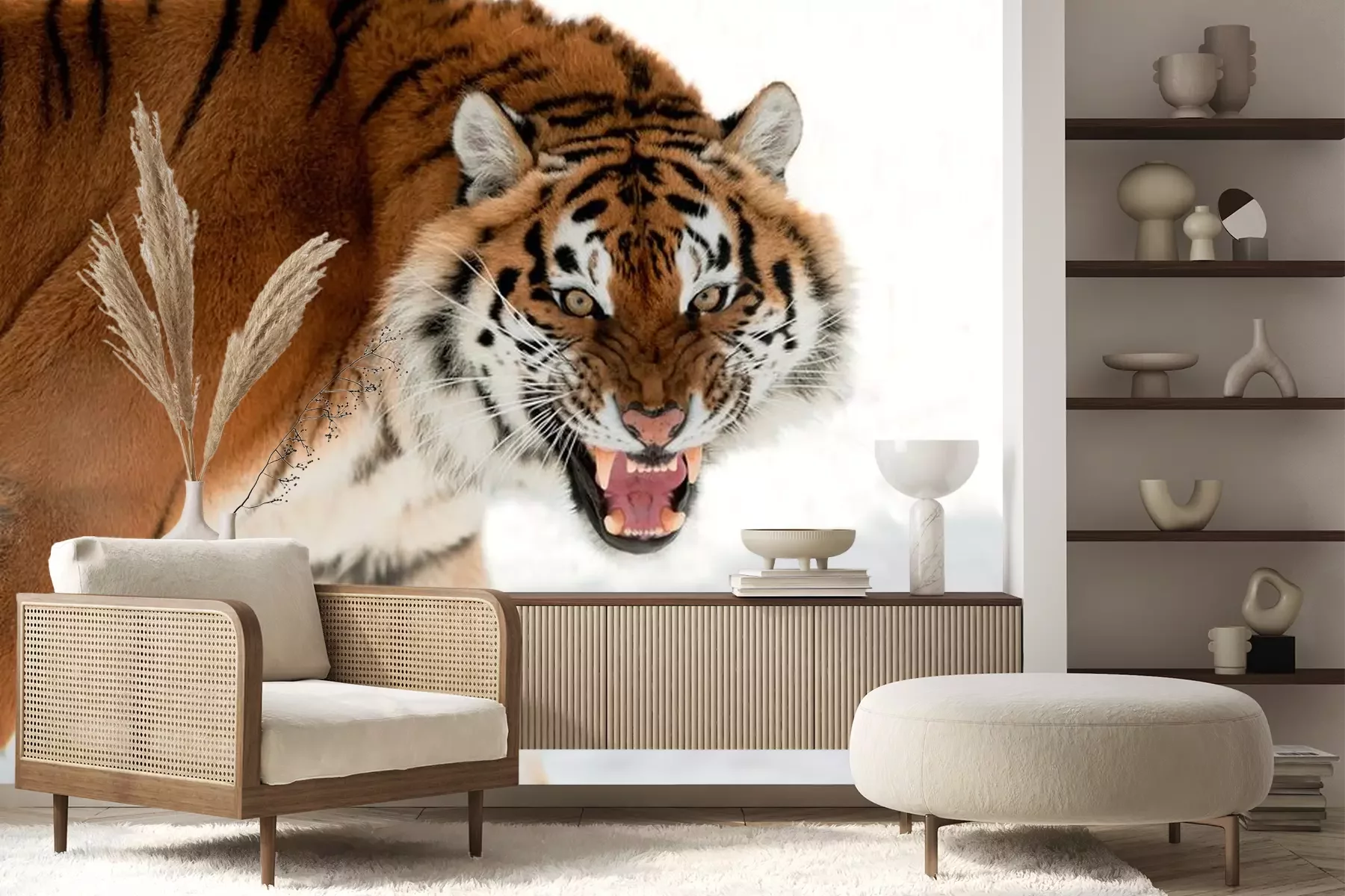 Sticker Wildtiere Tiger mit entblößten Stoßzähnen