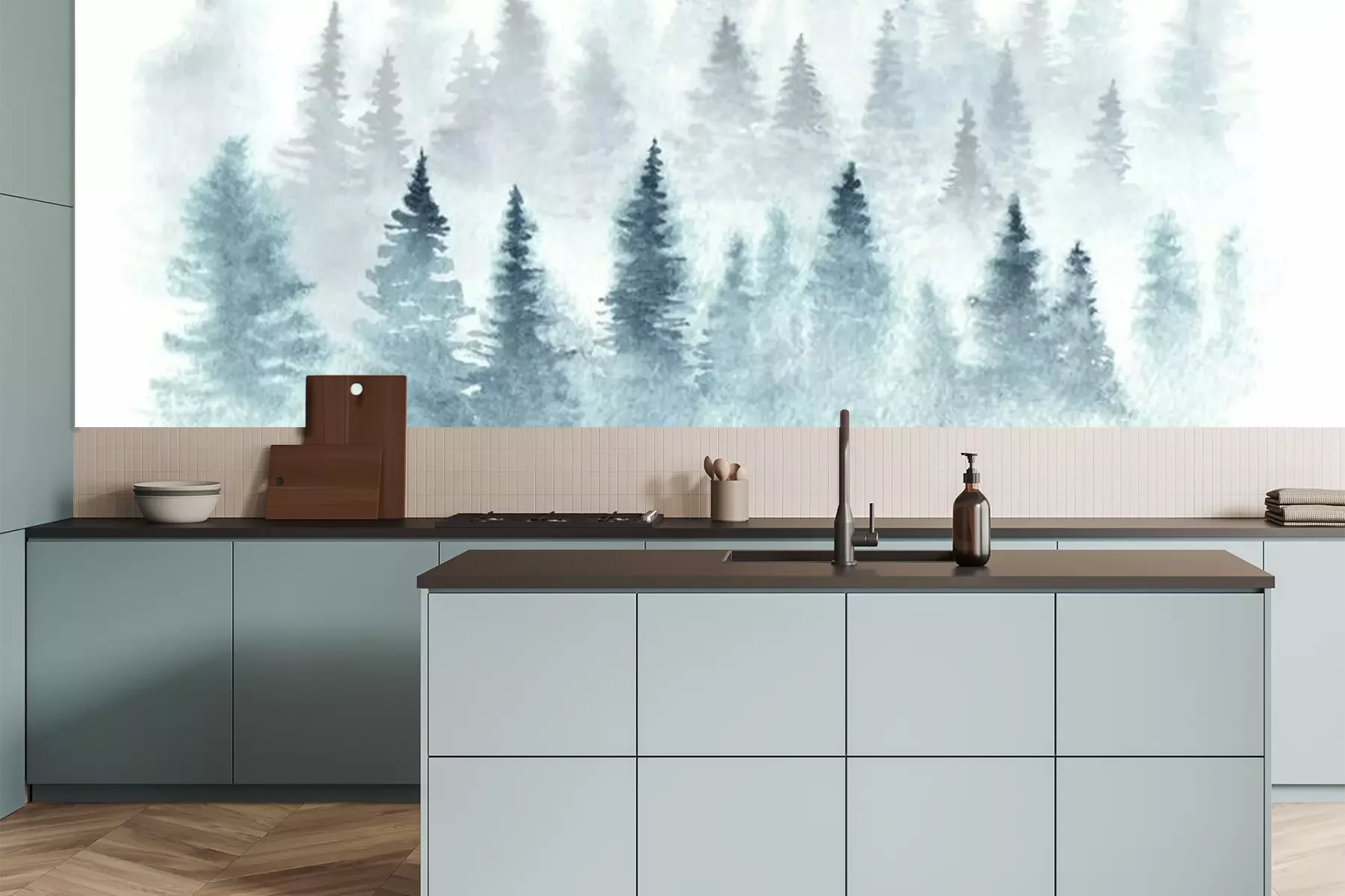 Aquarell-Landschaft mit Mond über BaumkronenProblemlose Lieferung durch vertrauenswürdige Spediteure