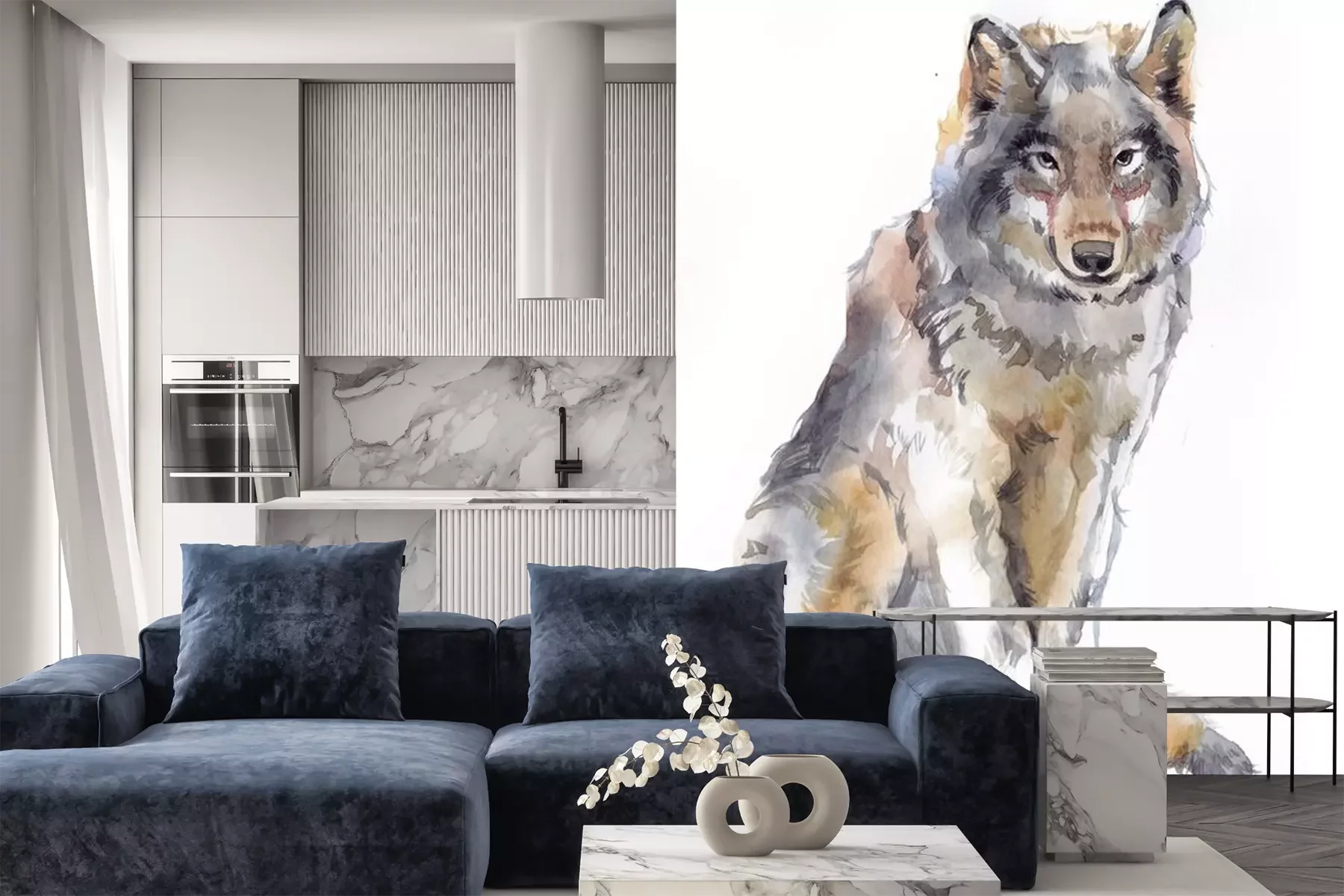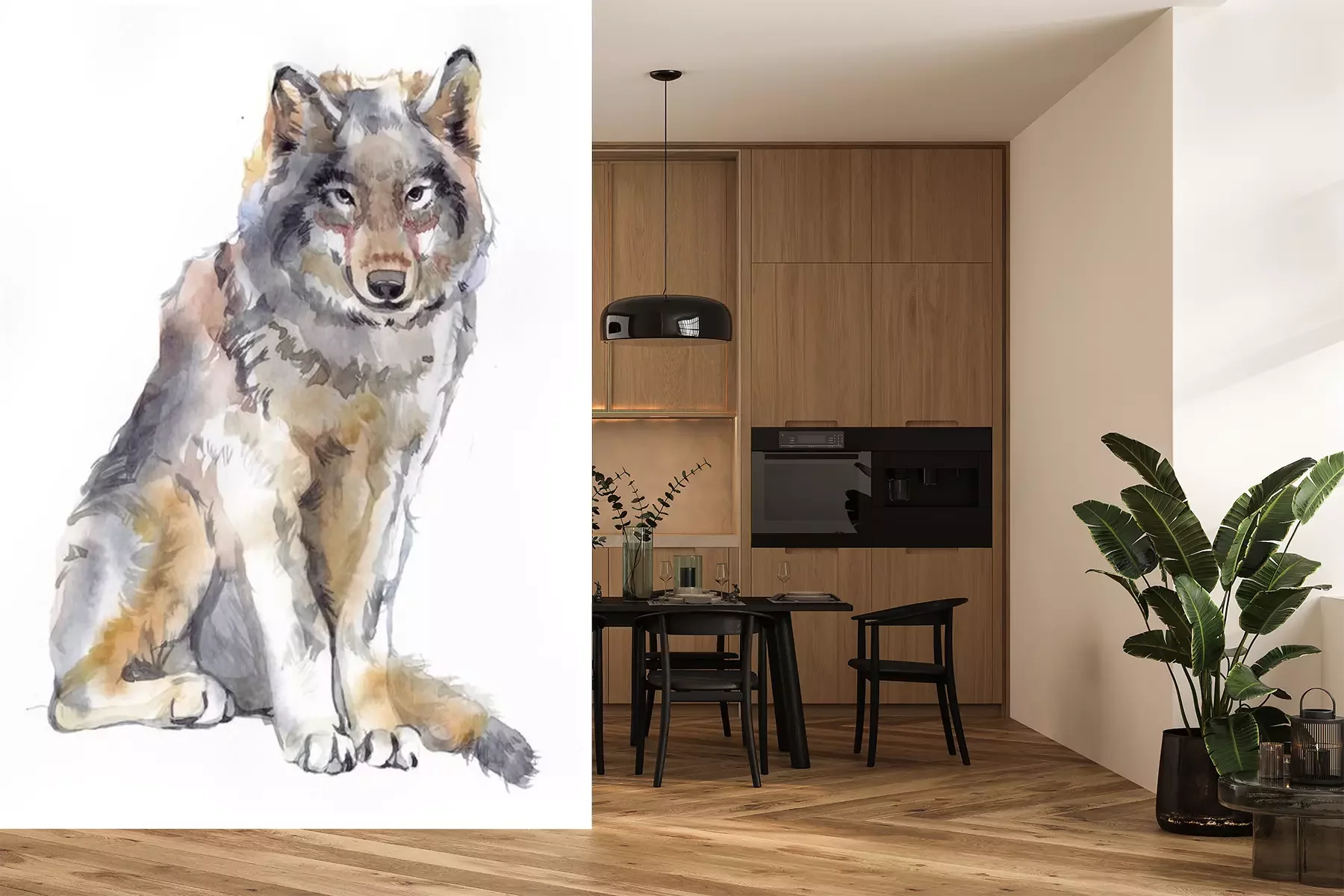 Sticker Wolf Aquarell Silhouette eines sitzenden Tieres