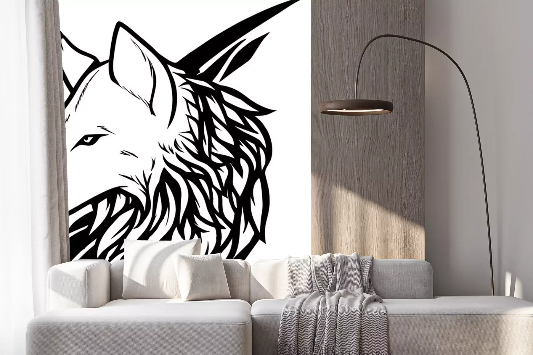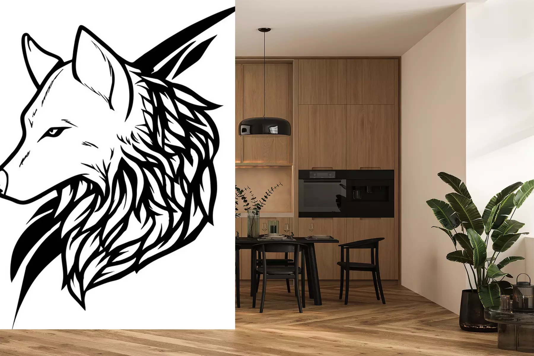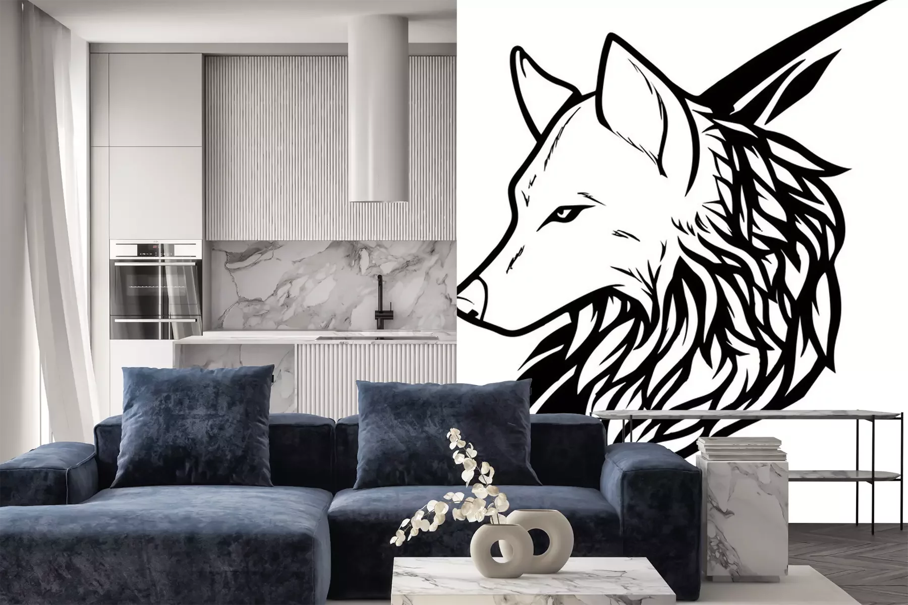 Sticker Wolf bedrohlicher Blick minimalistische Grafik