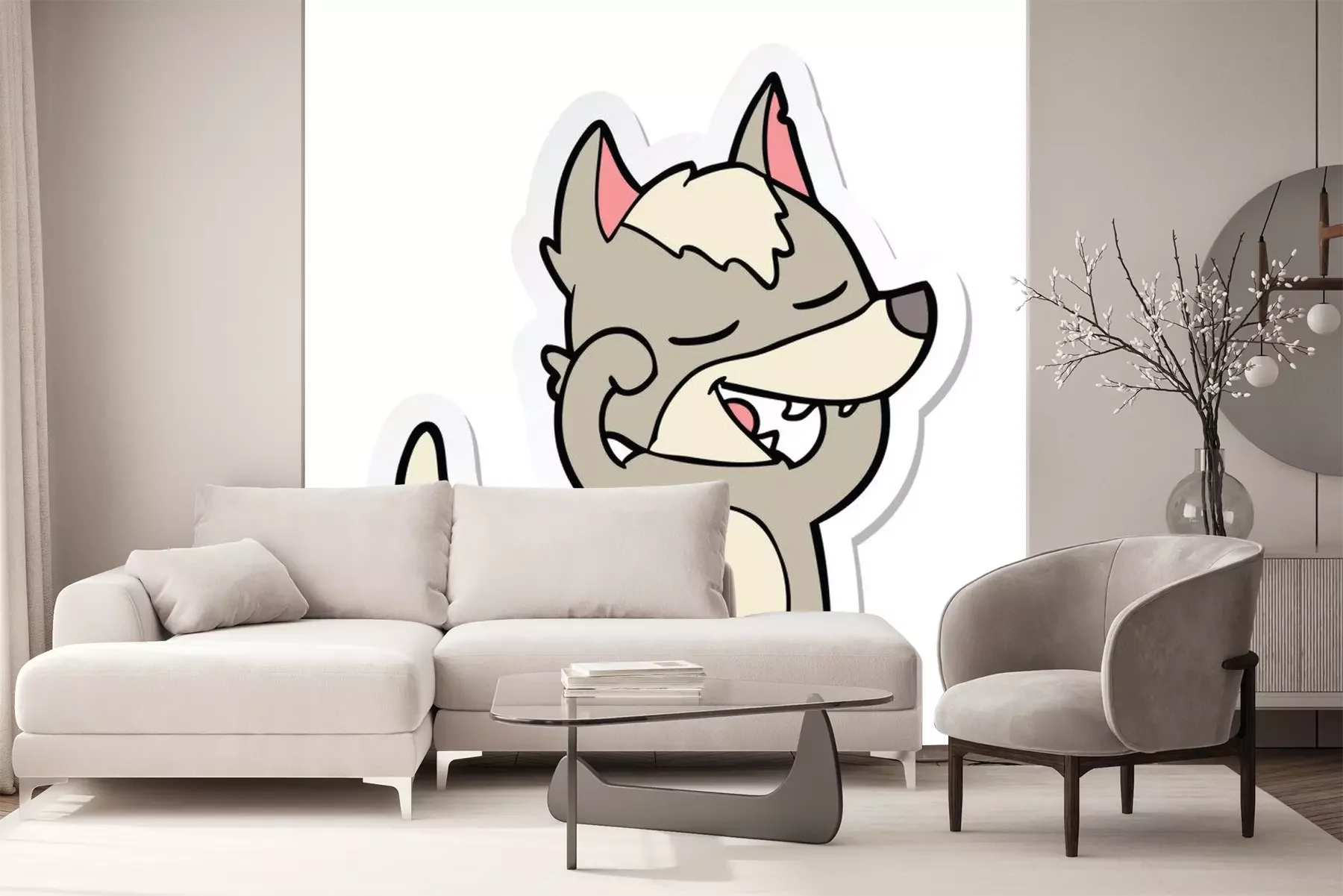 Sticker Wolf für Kinder in einem weißen Rahmen