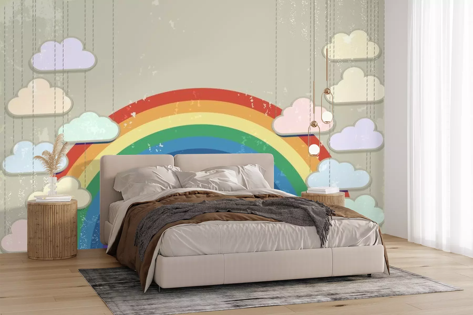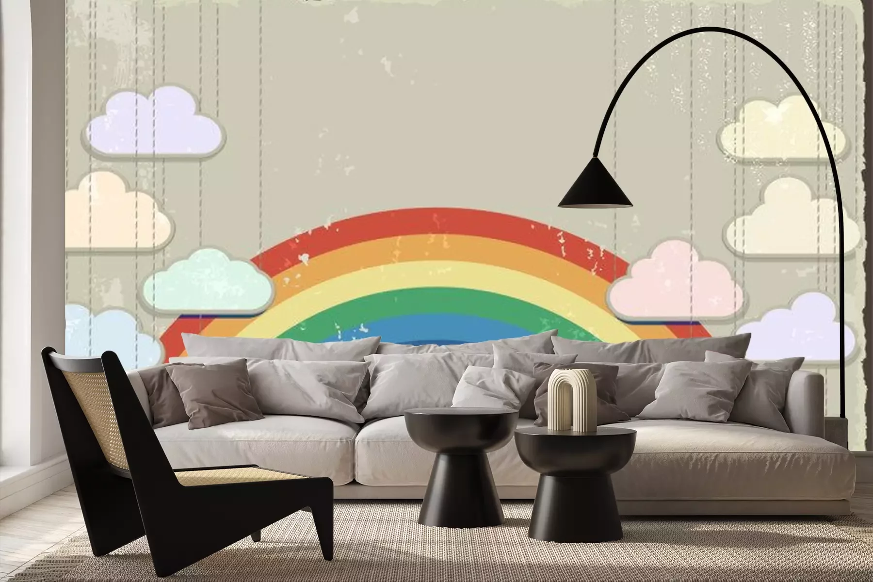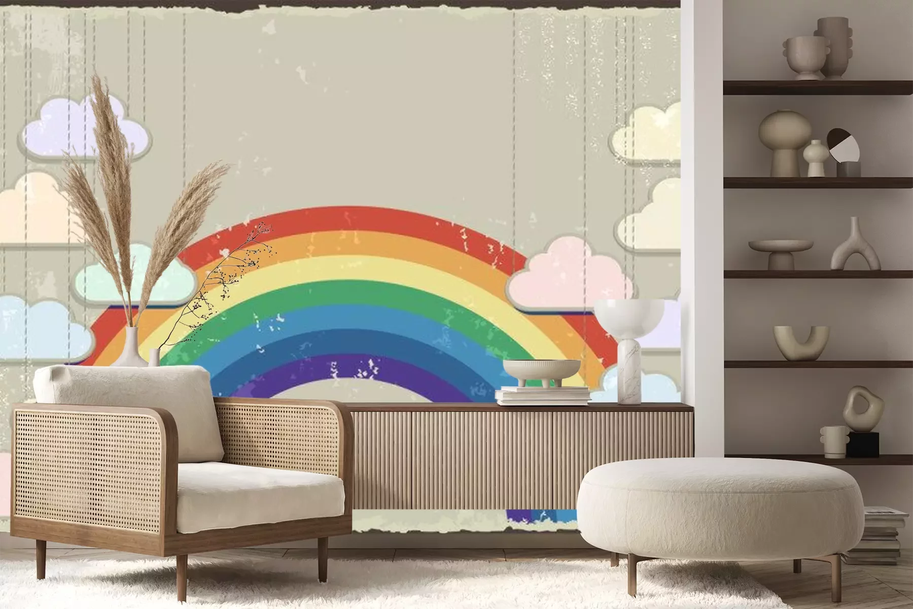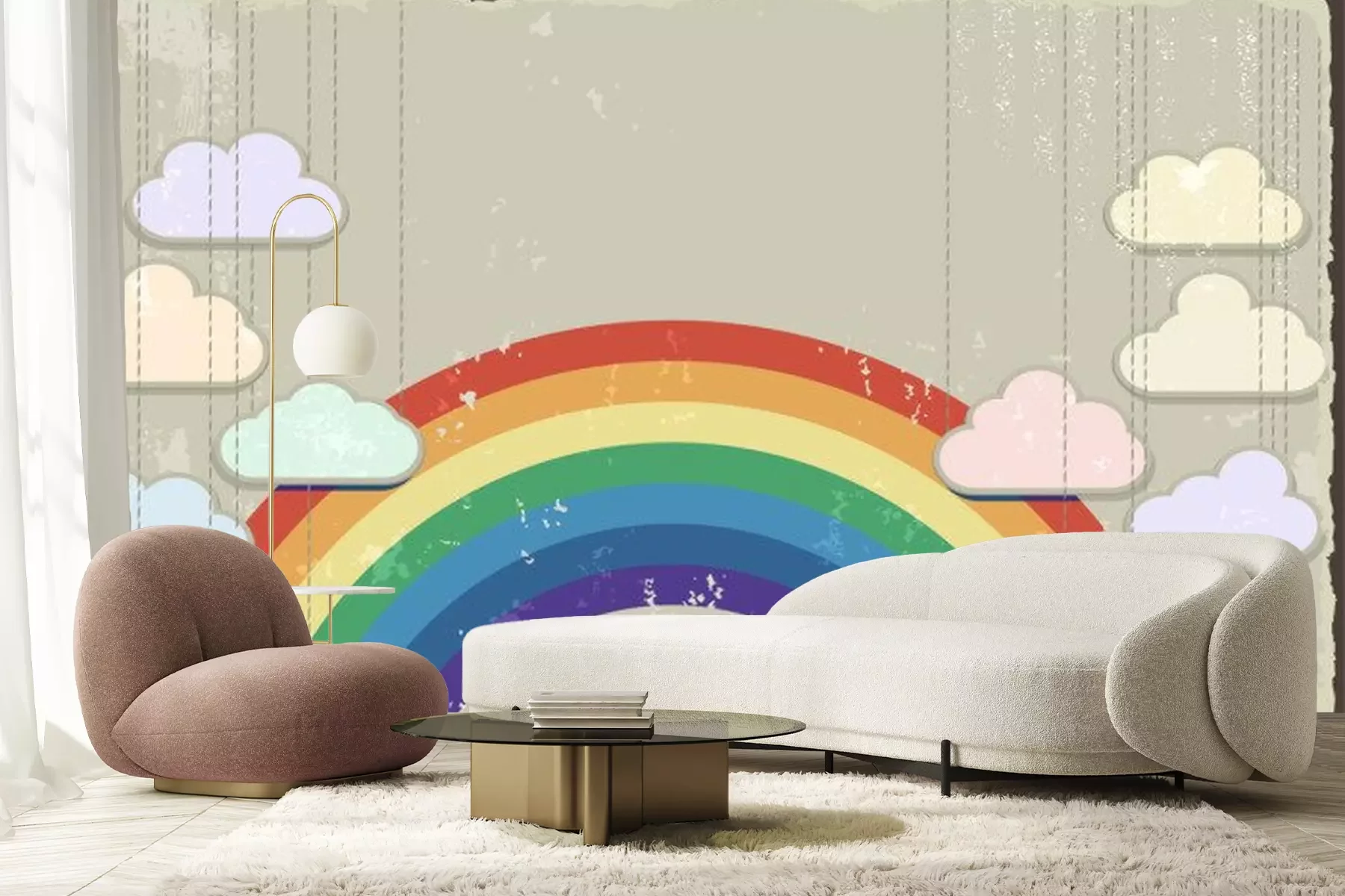 Sticker Wolken vor dem Hintergrund des Regenbogens im Vintage-Stil