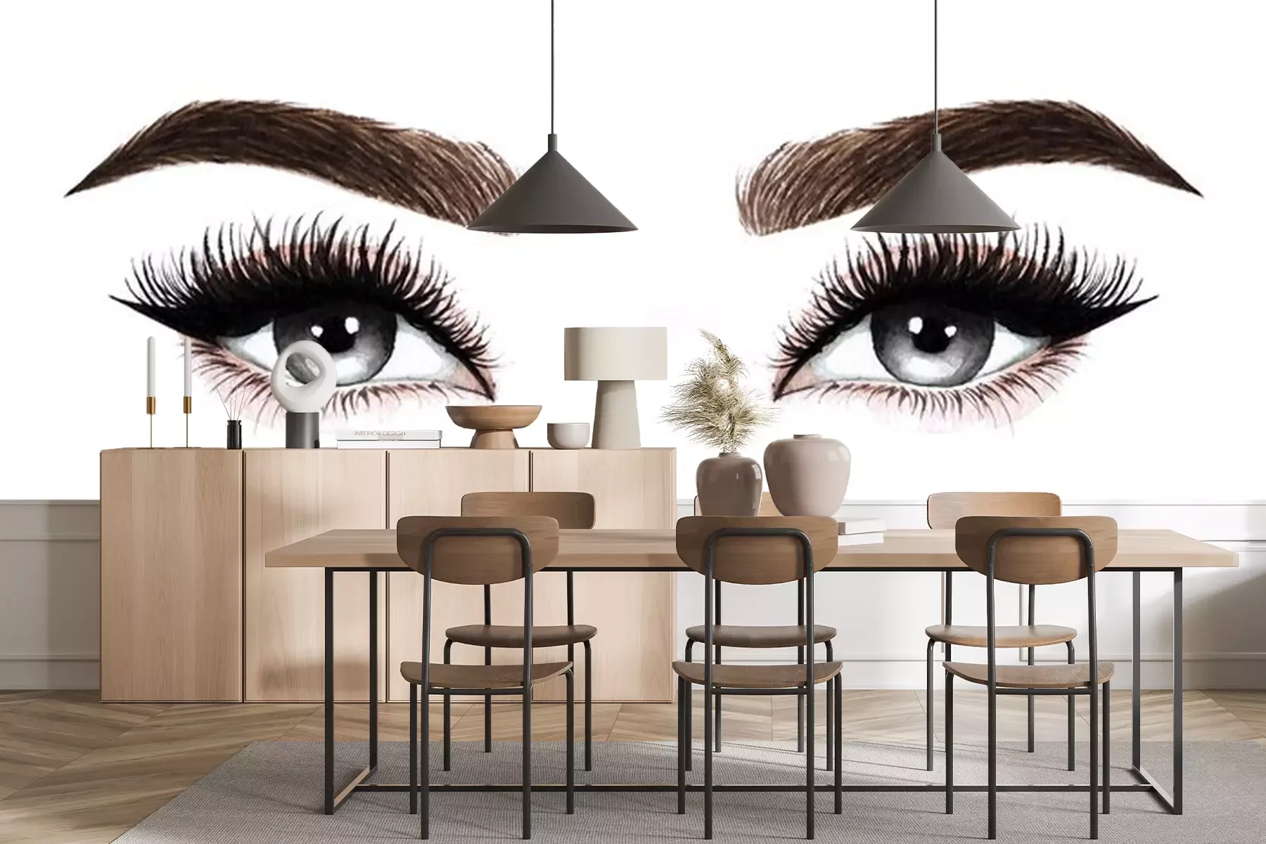 Sticker Woman eyes with long eyelashes. Hand drawn watercolor illustration. Eyelashes and eyebrows. Design for eyelash extensions, microblading, mascara, beauty salon, cosmetics, makeup artist. Black eyes.