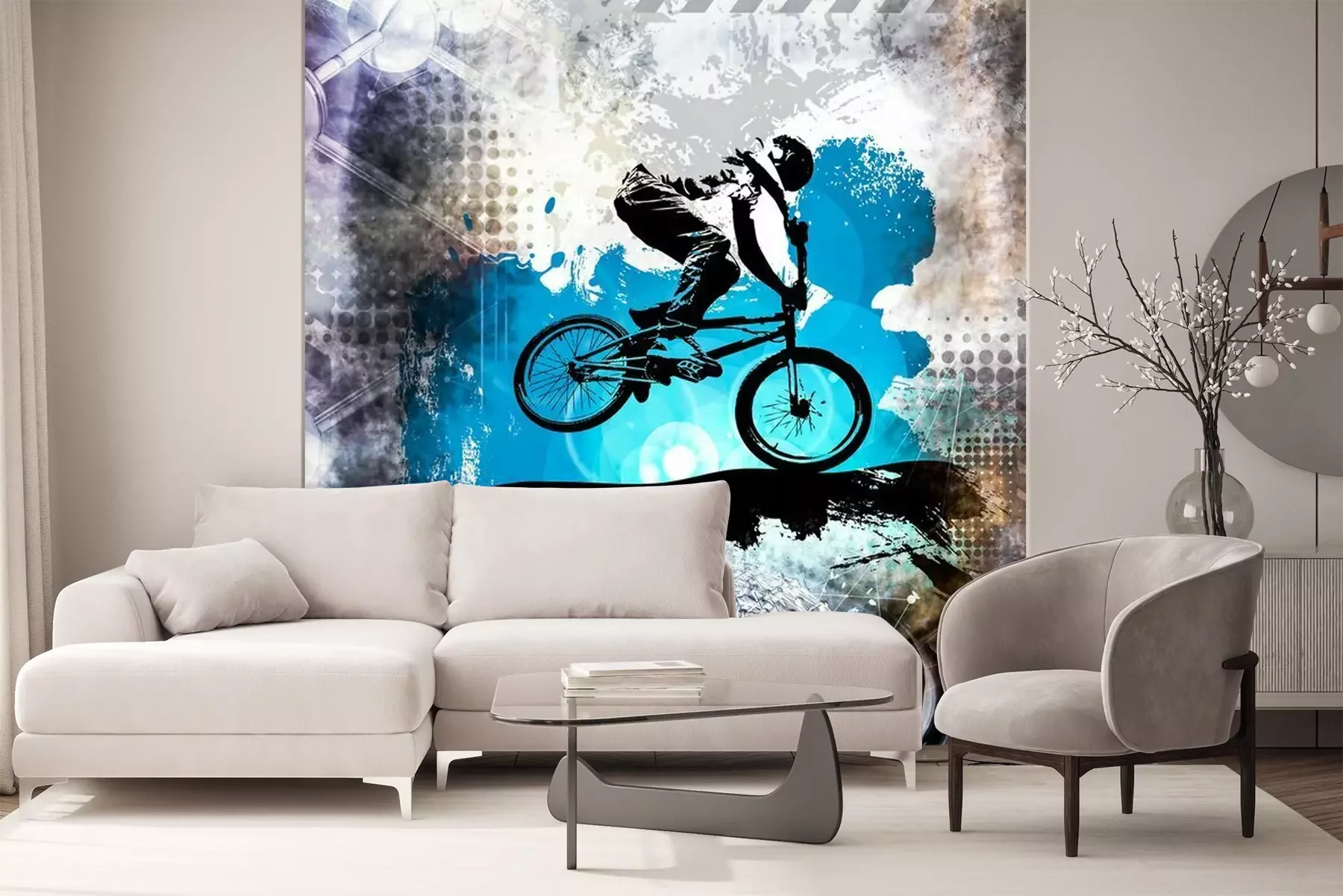 Sticker Young male bicycle jumper. Healthy lifestyle