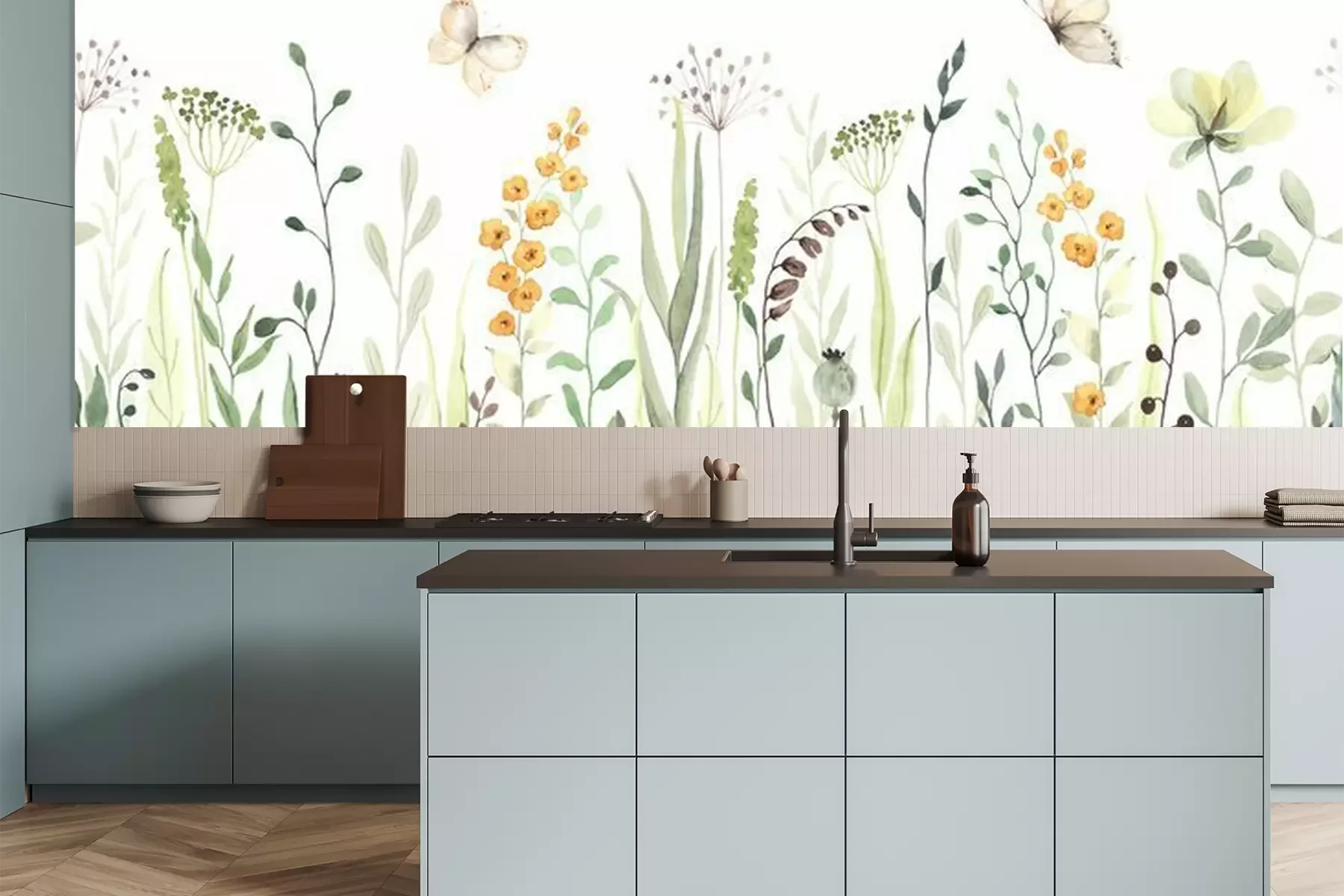 Sticker Zarte Wiese und fliegende Schmetterlinge
