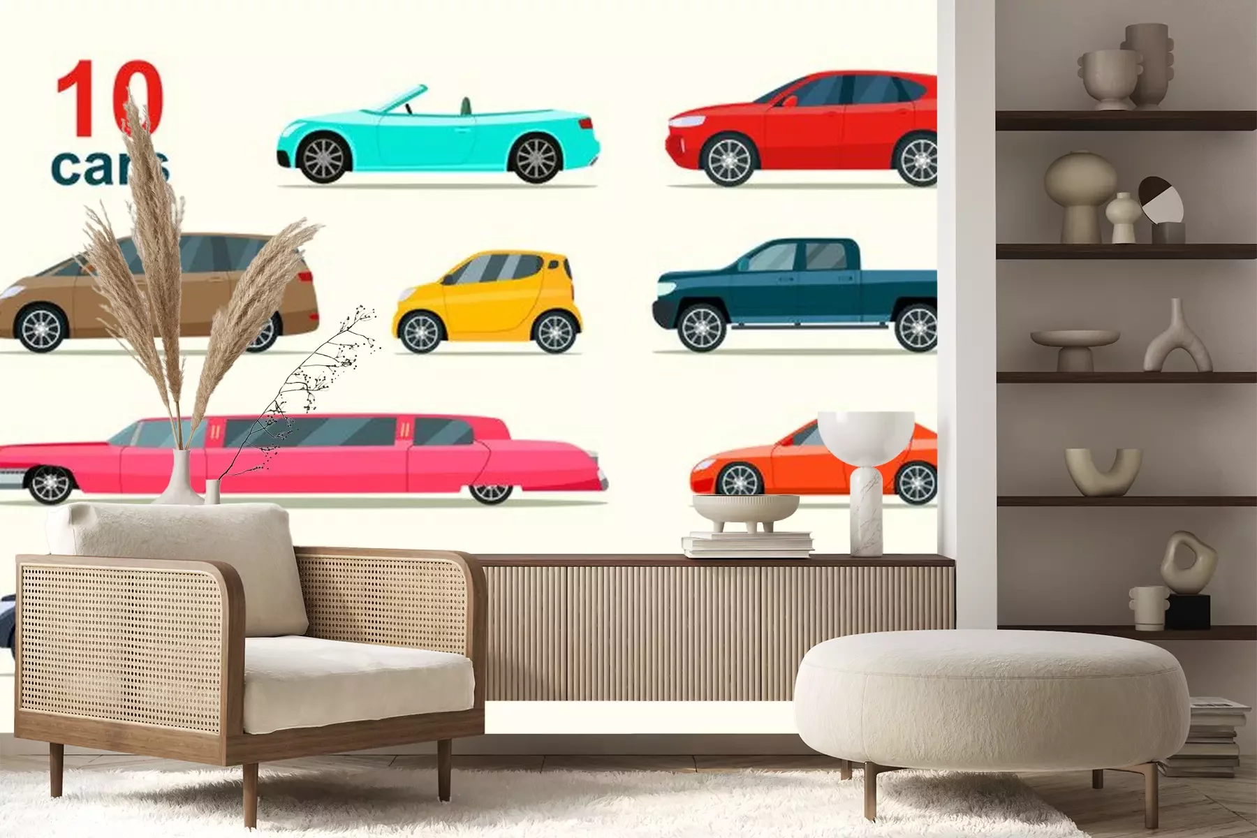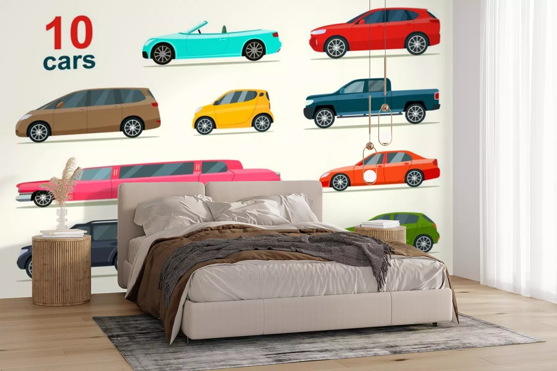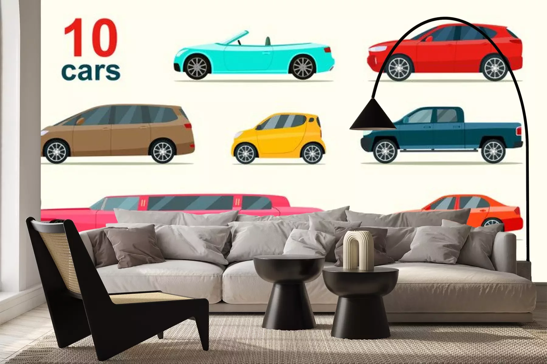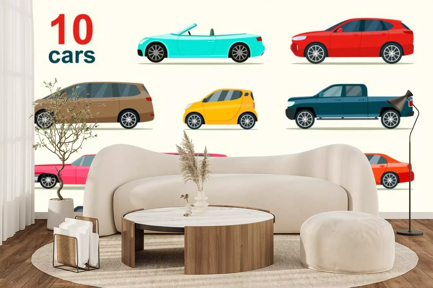 Sticker Zehn Autos in verschiedenen Formen und Farben