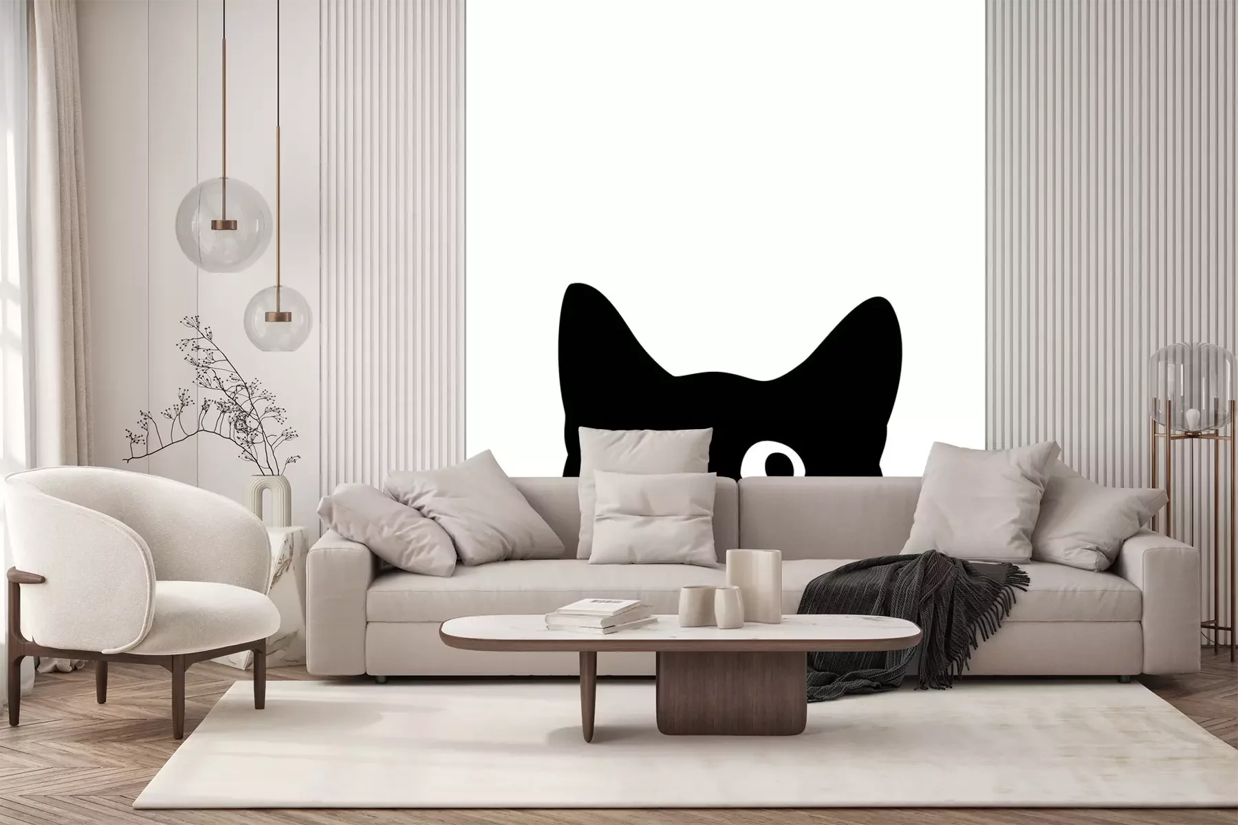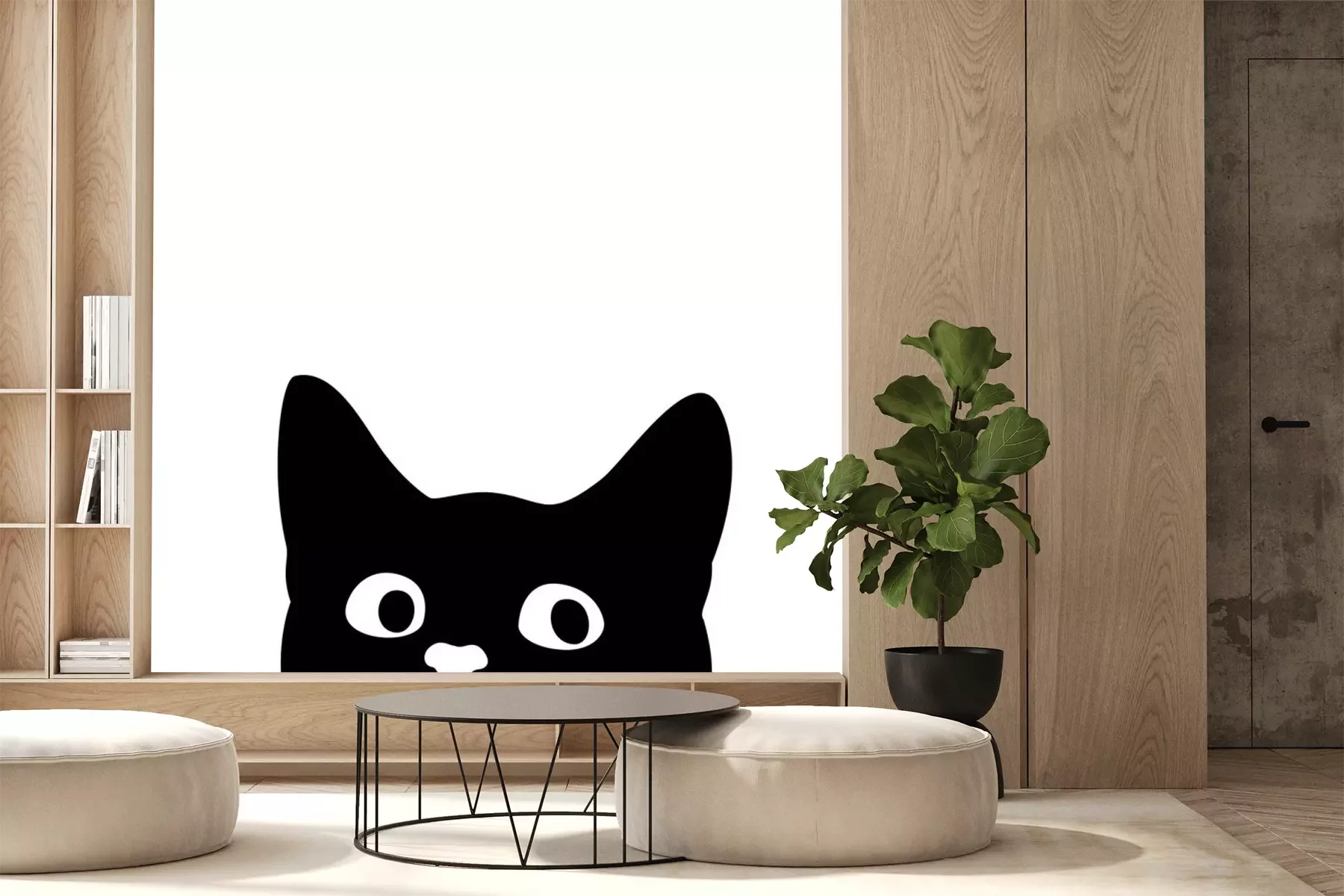 Sticker Zeichnung schwarz-weiße Katze schaut vom Rand aus