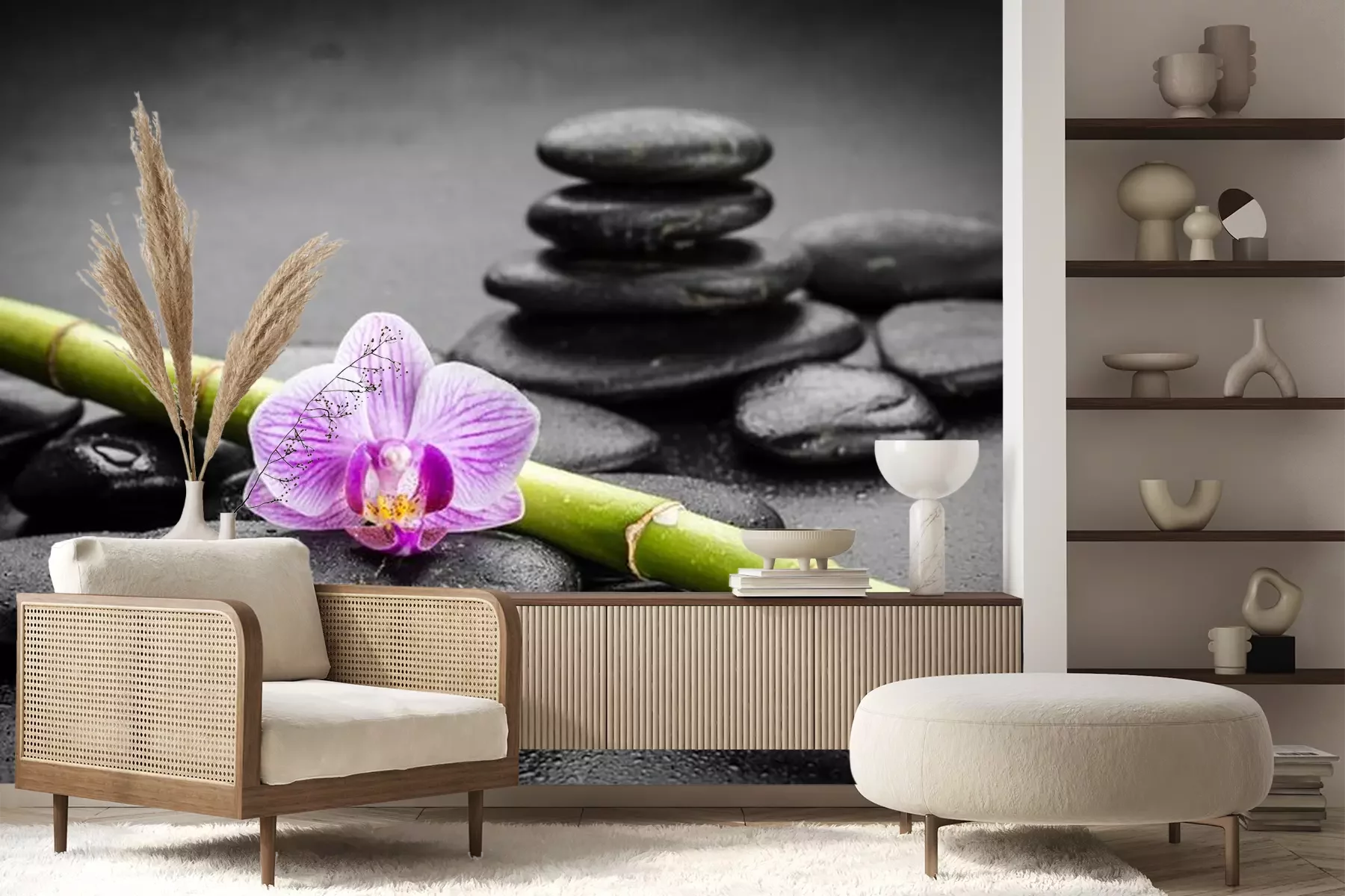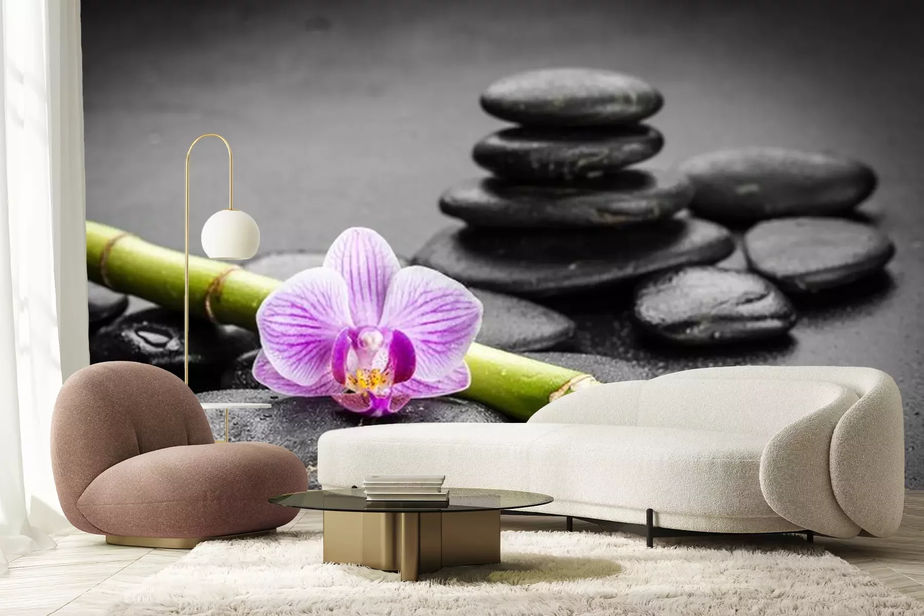 Orchideen Steine und grüner BambusProblemlose Lieferung durch vertrauenswürdige Spediteure