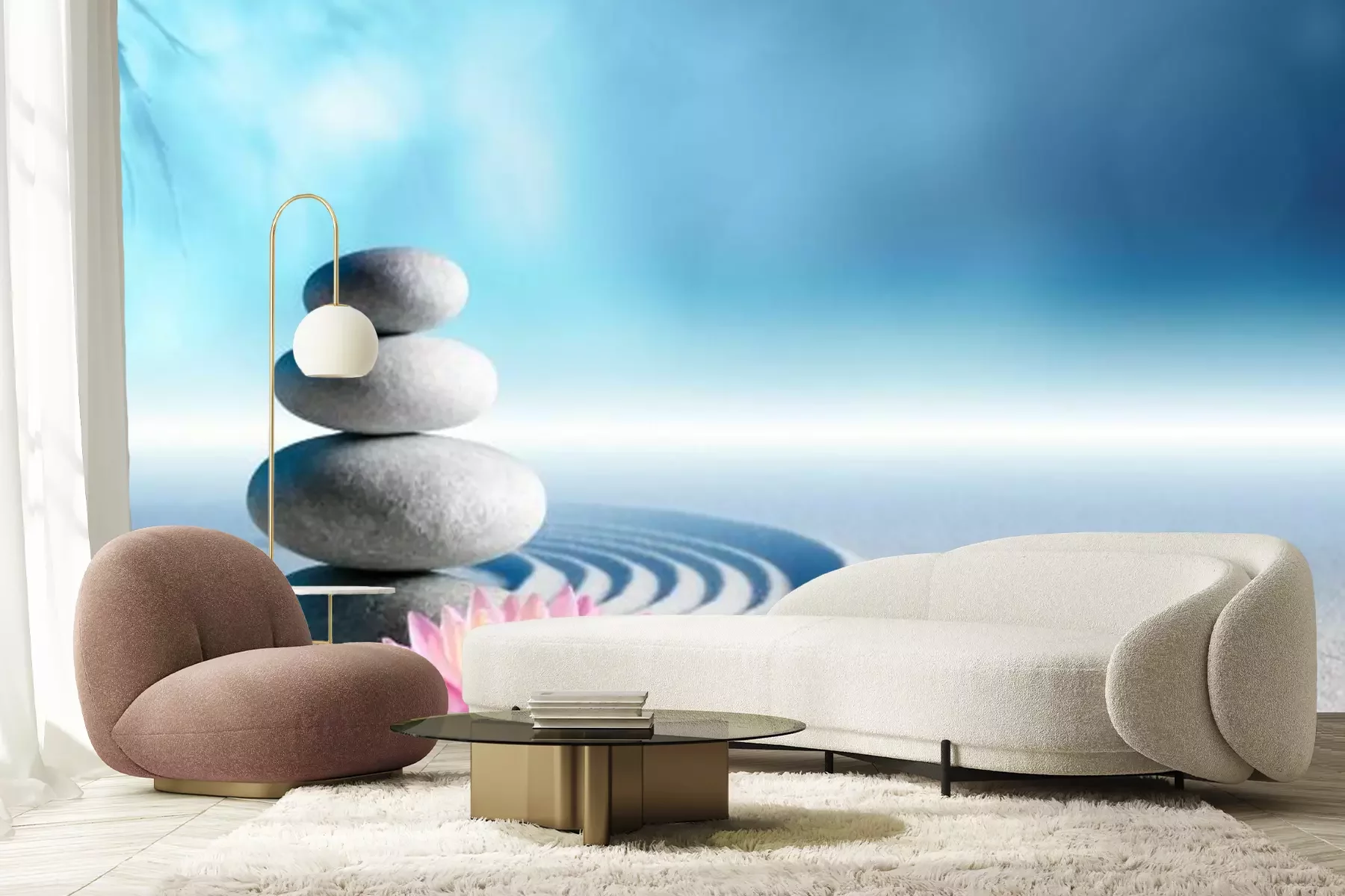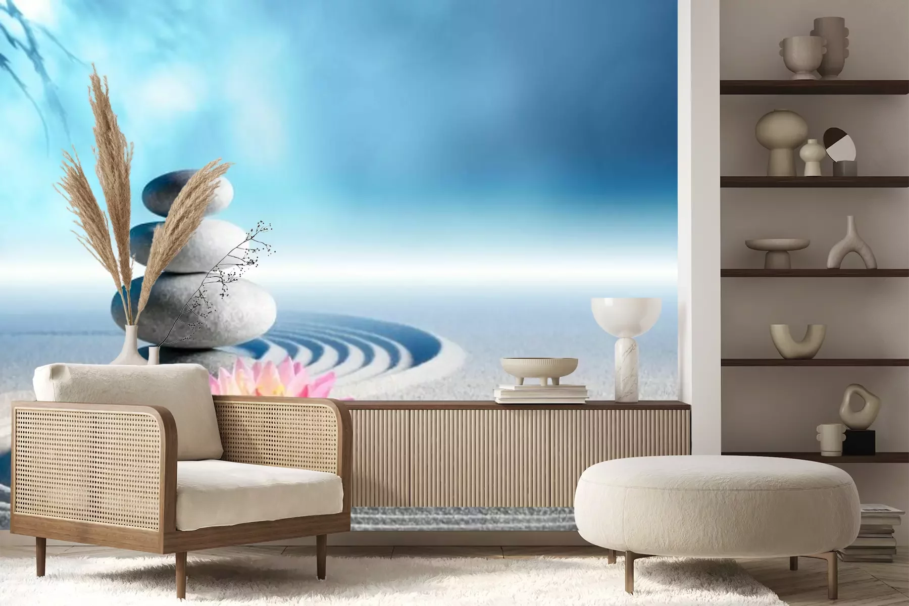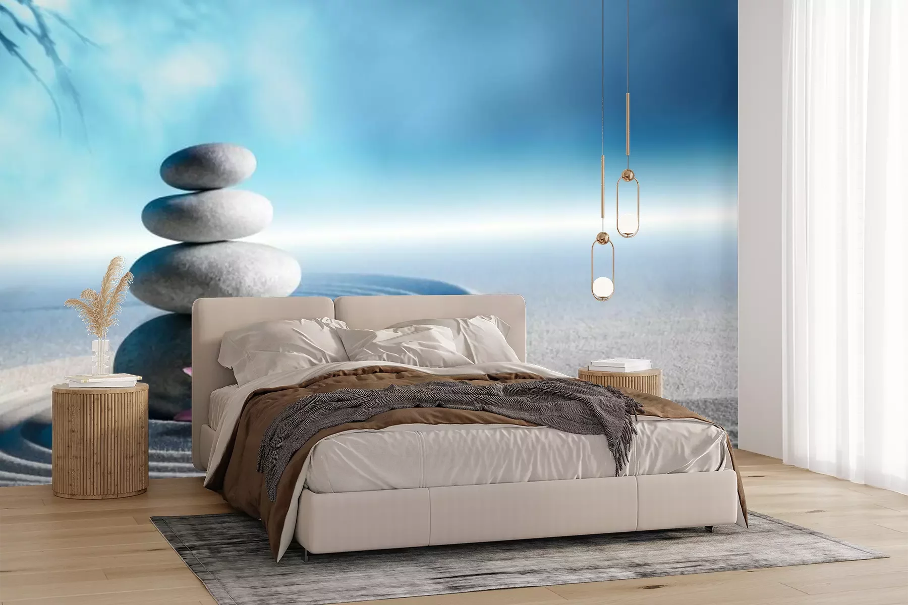 Bambus Blumen und SteineFototapete