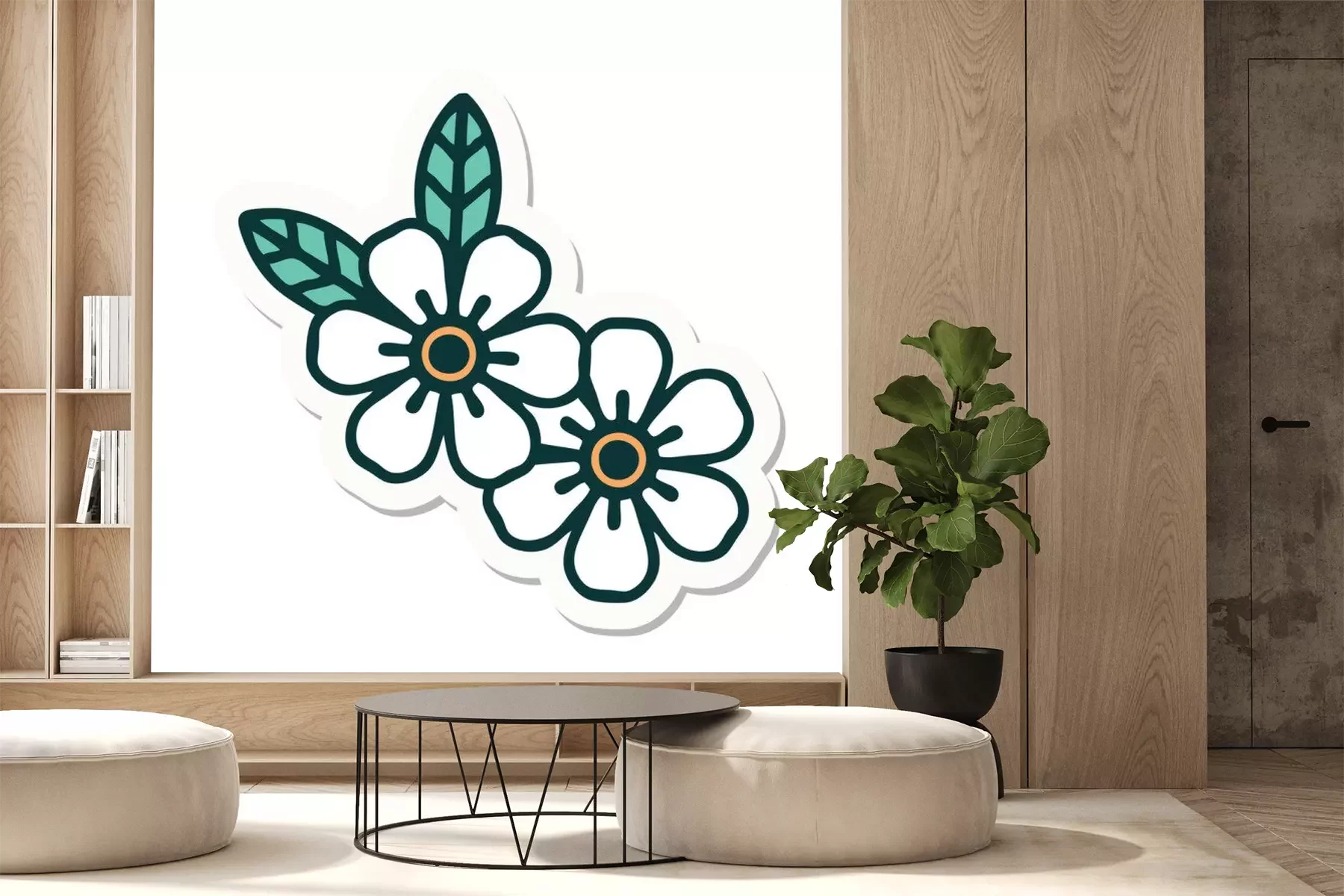 Sticker Zwei weiße Blumen minimalistische Illustration