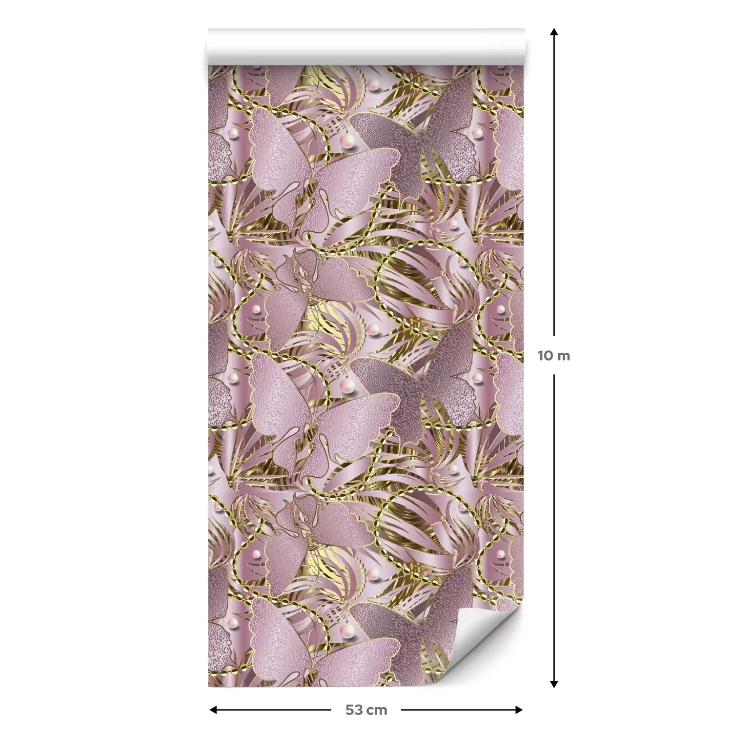 Eine Standard-Tapetenrolle hat die Maße 0,53 m x 10 m und deckt eine Wandfläche von etwa 5 m² ab.