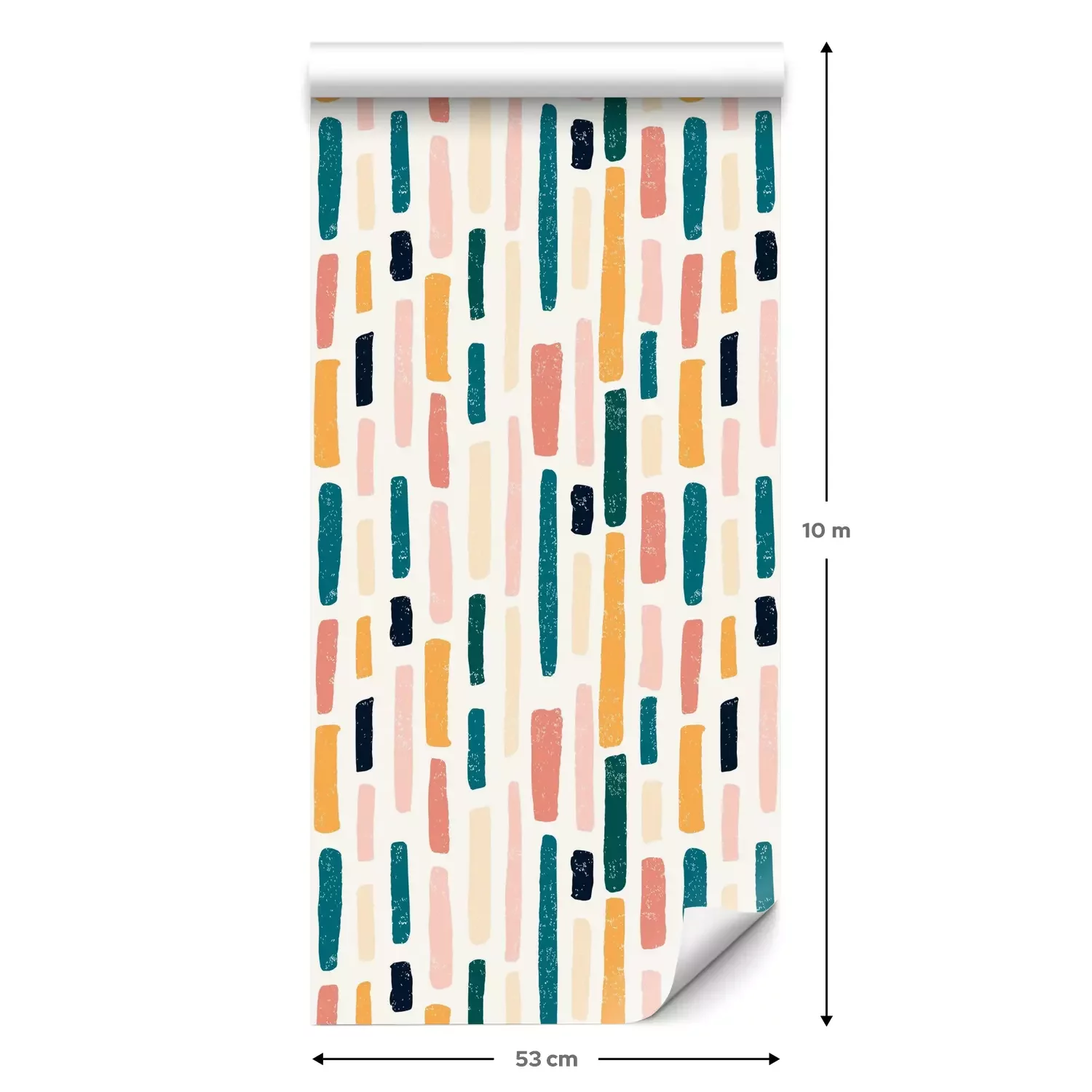 Eine Standard-Tapetenrolle hat die Maße 0,53 m x 10 m und deckt eine Wandfläche von etwa 5 m² ab.