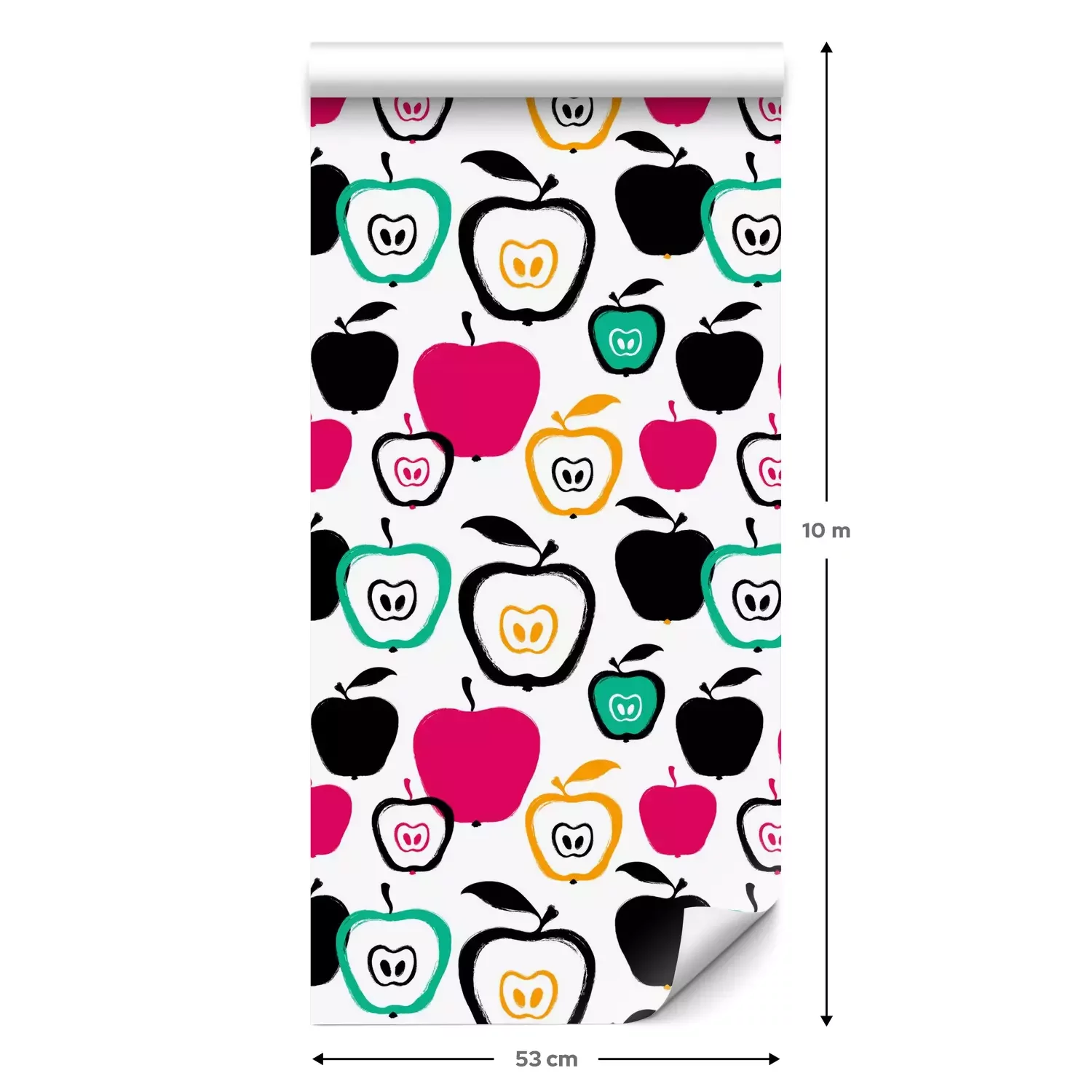 Eine Standard-Tapetenrolle hat die Maße 0,53 m x 10 m und deckt eine Wandfläche von etwa 5 m² ab.