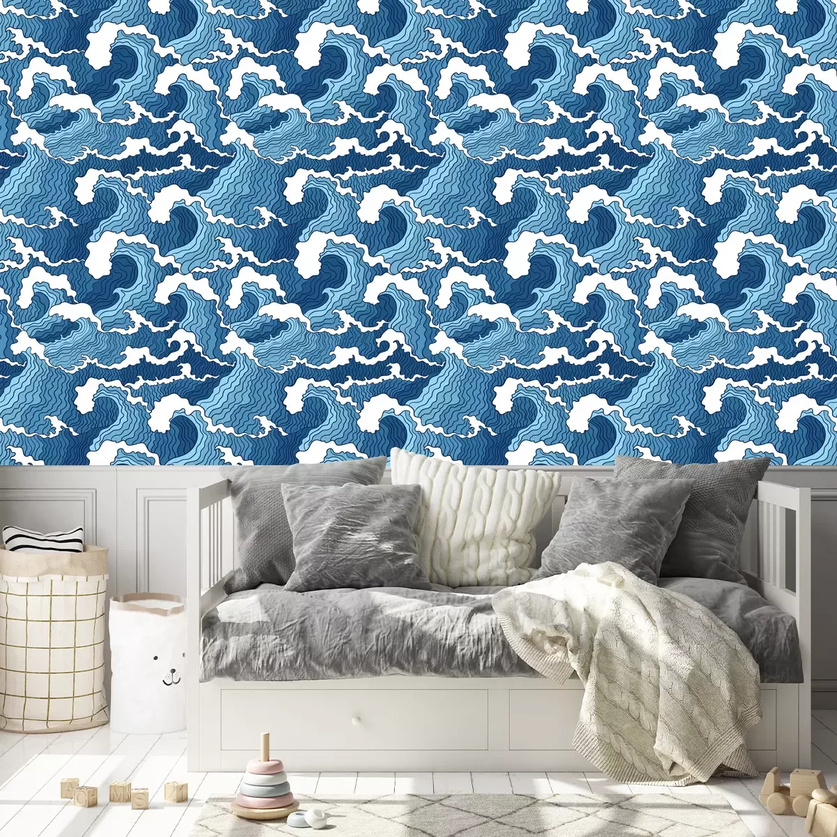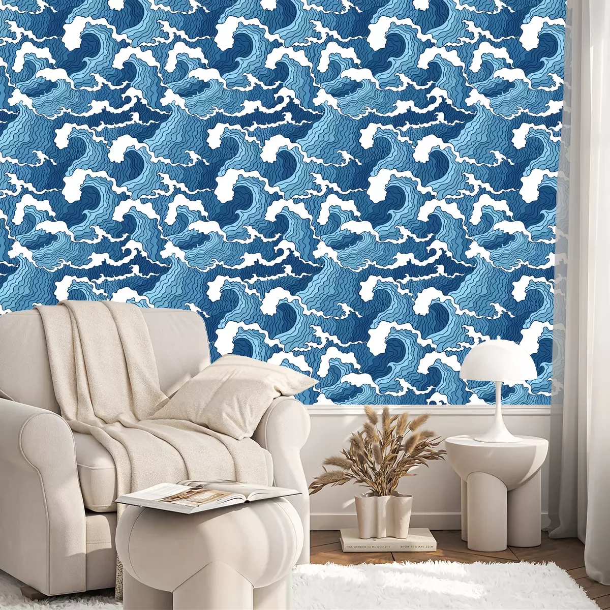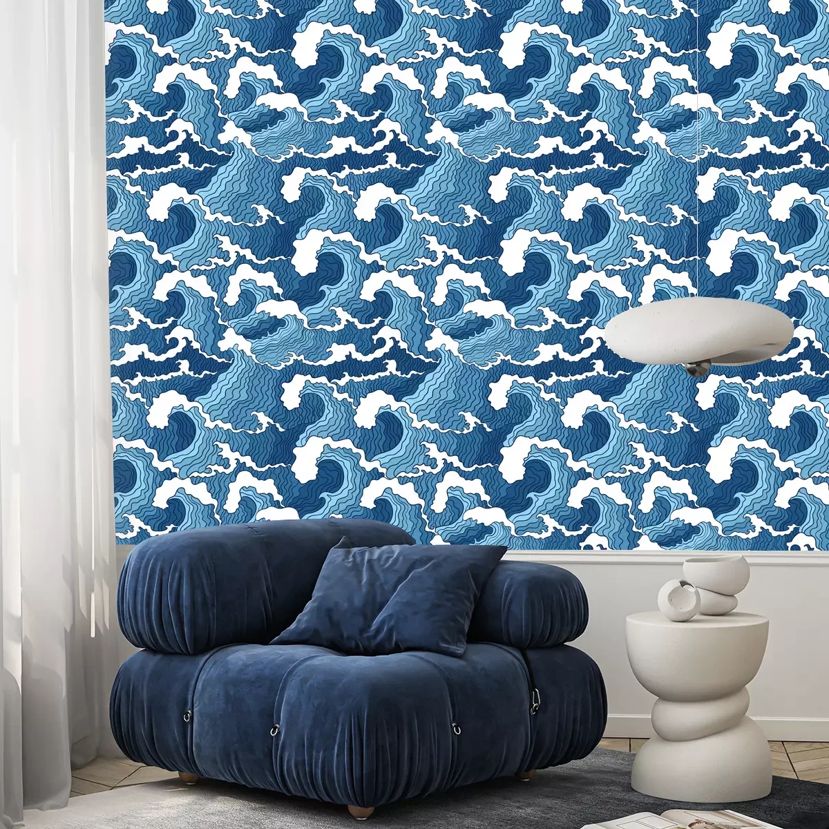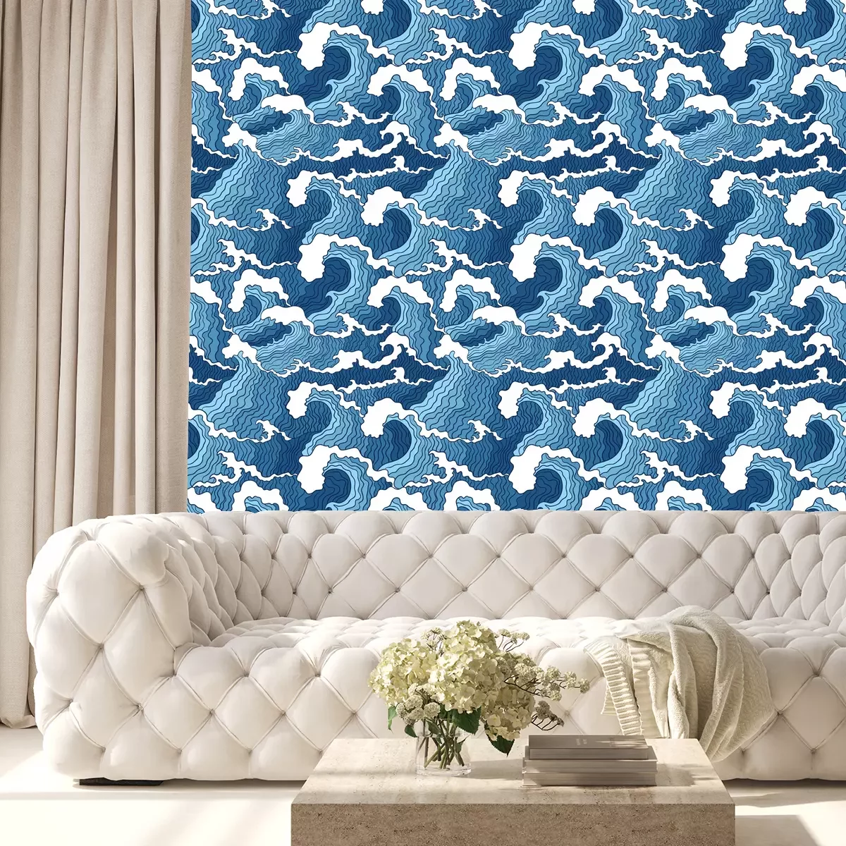 Tapete Abstrakte blaue und weiße Wellen