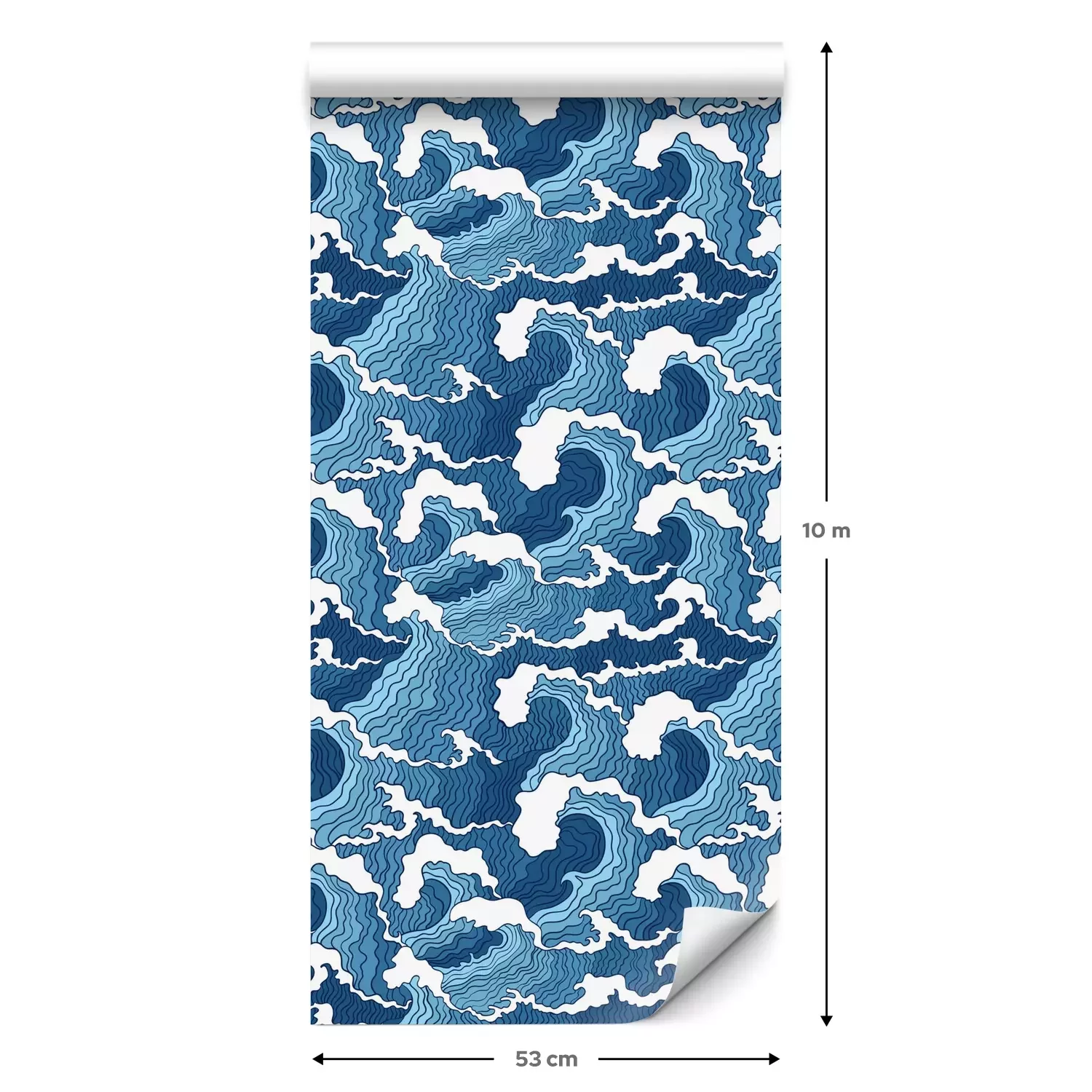 Eine Standard-Tapetenrolle hat die Maße 0,53 m x 10 m und deckt eine Wandfläche von etwa 5 m² ab.