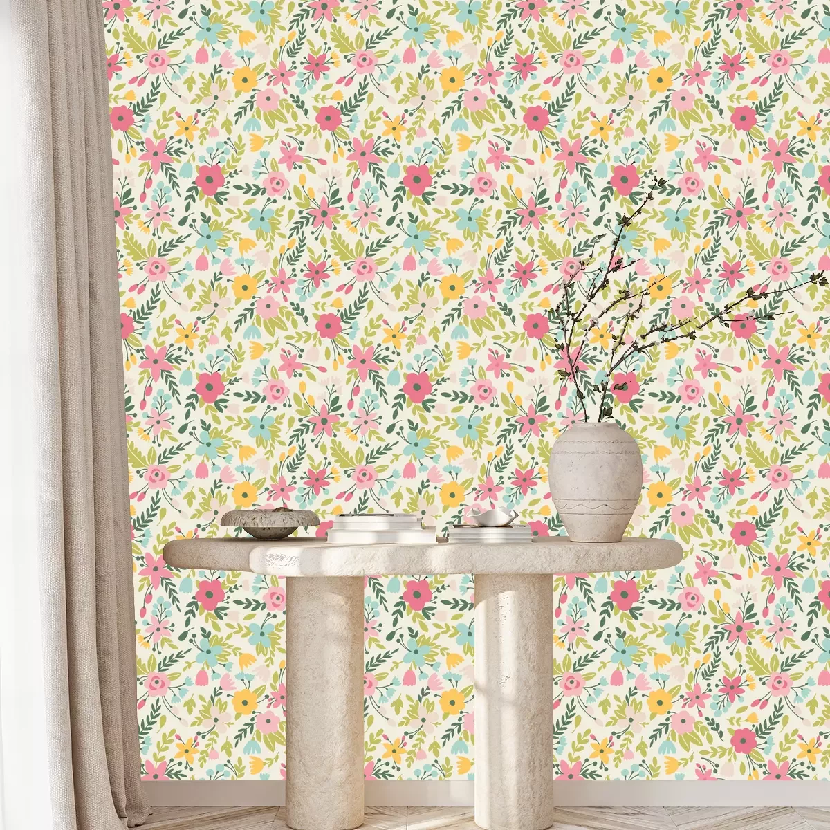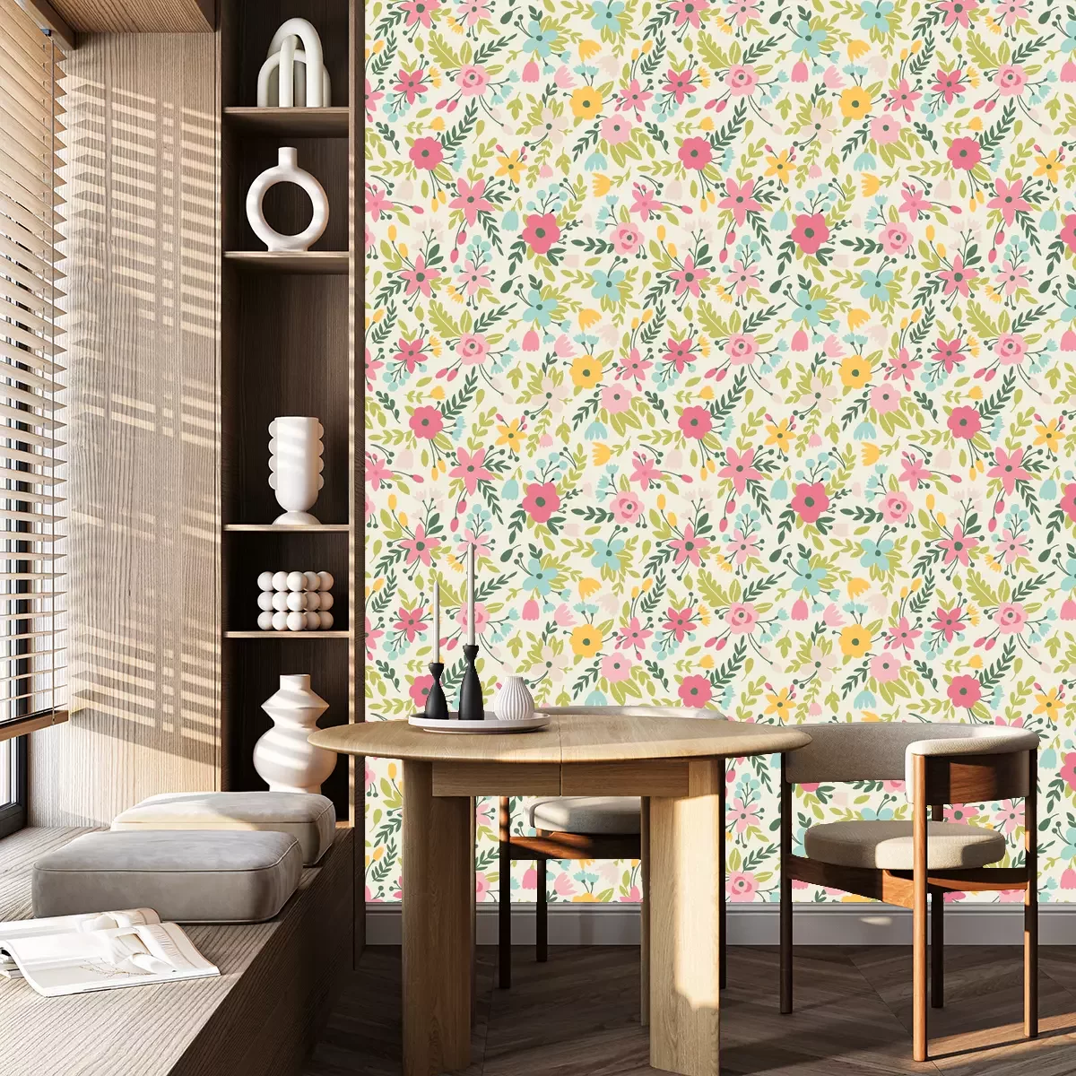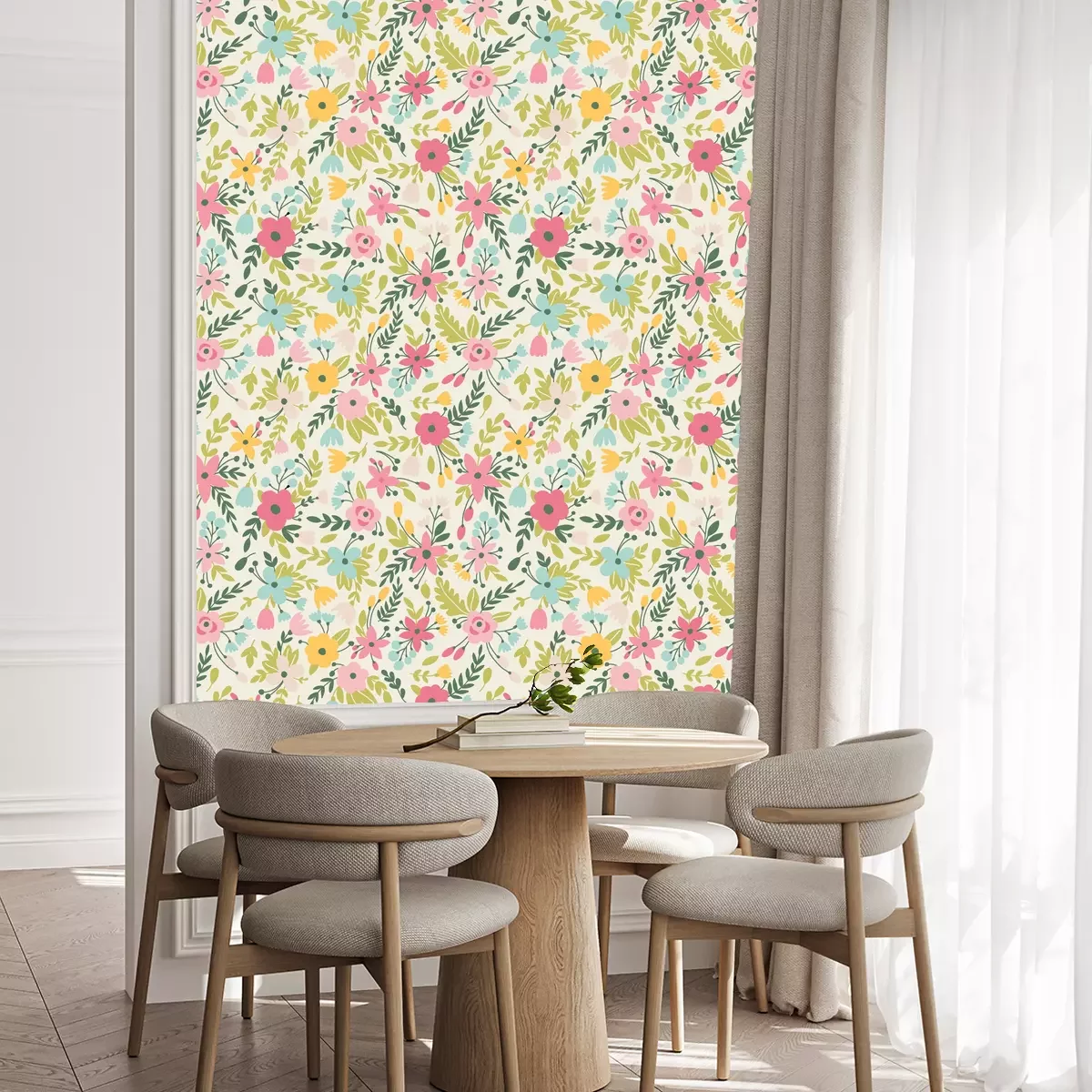 Blaues und rosa BlumenmusterTapete