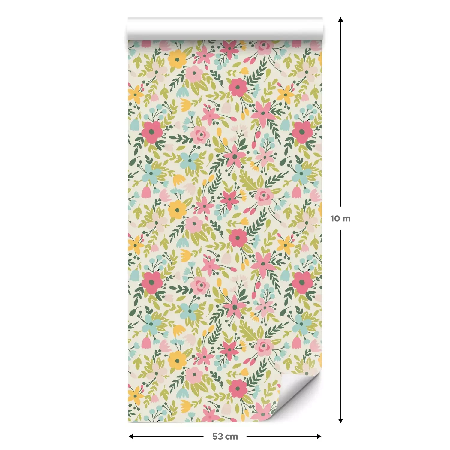 Eine Standard-Tapetenrolle hat die Maße 0,53 m x 10 m und deckt eine Wandfläche von etwa 5 m² ab.