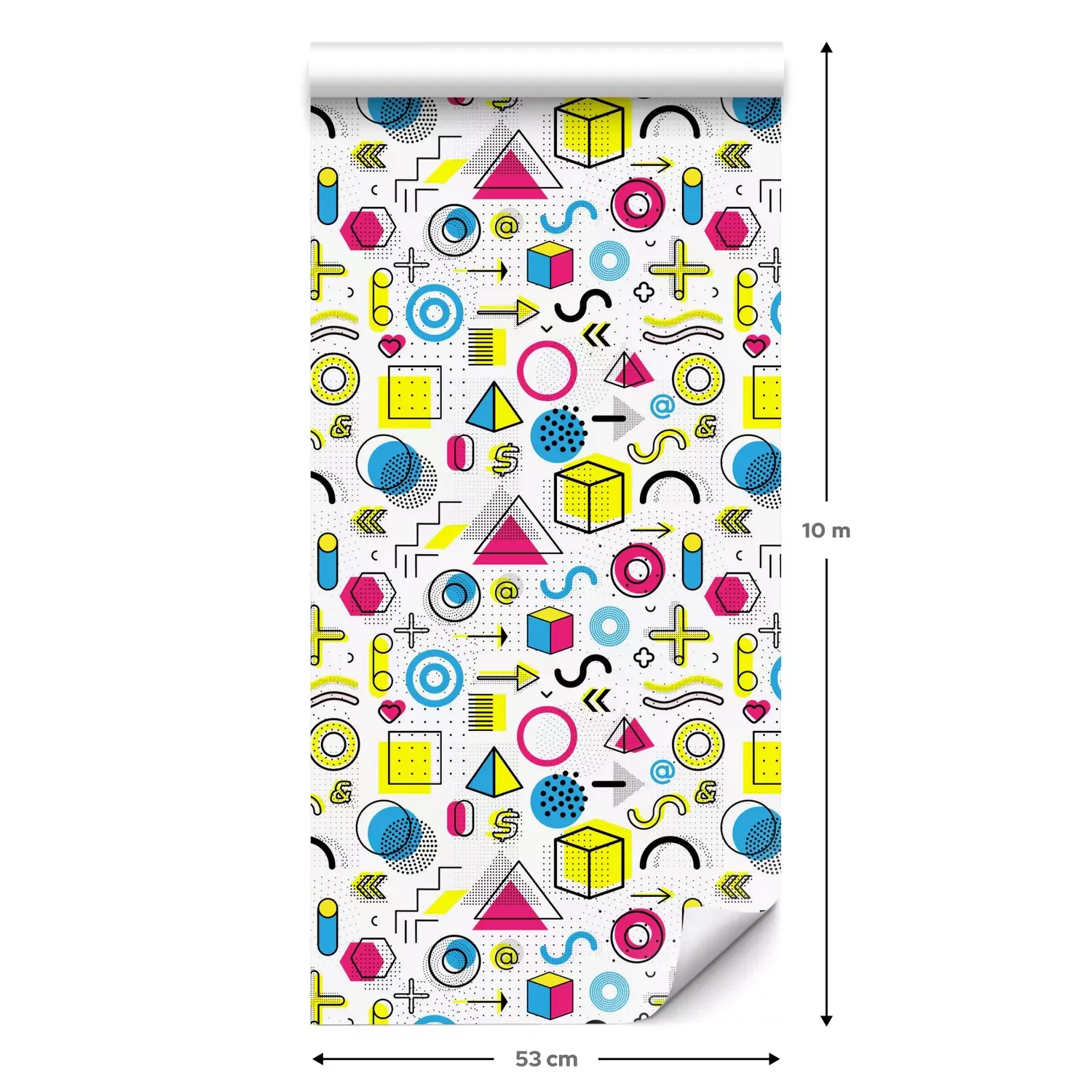Eine Standard-Tapetenrolle hat die Maße 0,53 m x 10 m und deckt eine Wandfläche von etwa 5 m² ab.