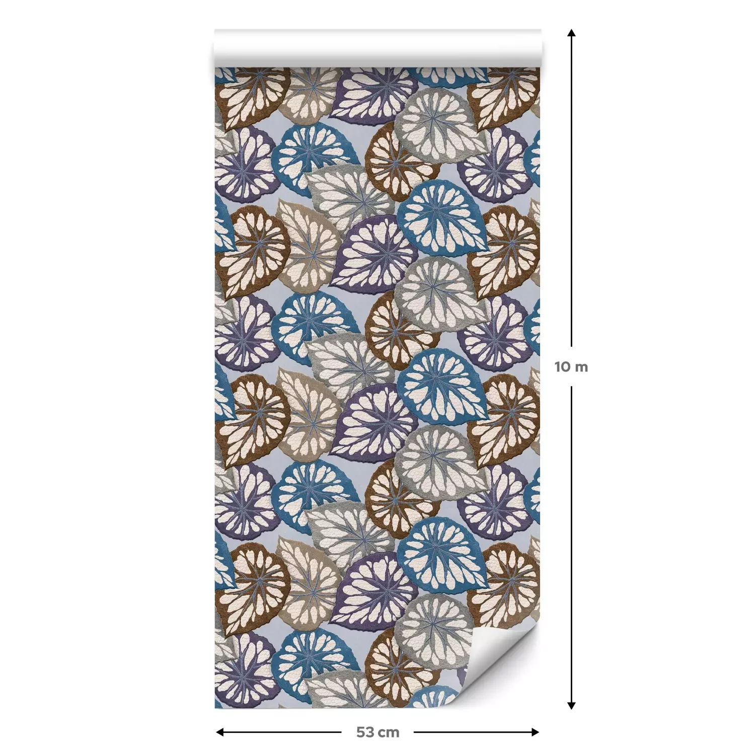 Eine Standard-Tapetenrolle hat die Maße 0,53 m x 10 m und deckt eine Wandfläche von etwa 5 m² ab.