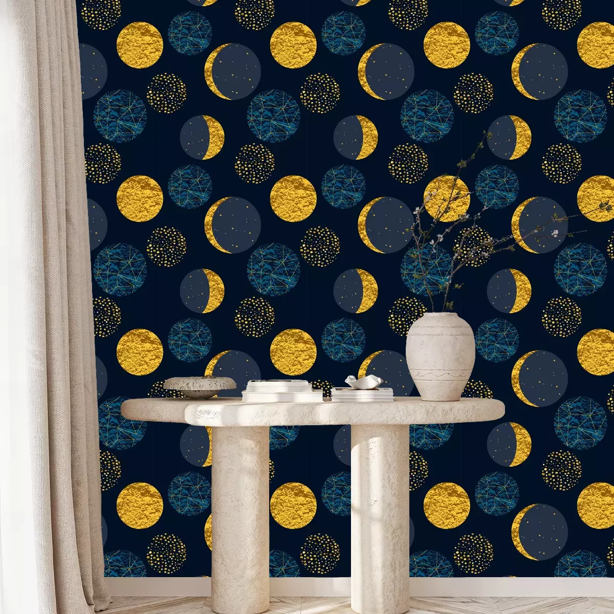 Die Tapete zeichnet sich durch ein sich wiederholendes Muster aus, das ein rhythmisches Design erzeugt. Als Trägermaterial wird hier Vlies verwendet. Sie wird in Rollen mit den standardisierten Maßen 10 m x 53 cm verkauft. Eine Fototapete ist eine spezielle Art von Tapete, auf der ein Foto oder ein realistisches Bild (z.B. eine Landschaft oder eine Stadtansicht) großflächig aufgedruckt ist. Sie wird nicht in Standardrollen verkauft, sondern in Bahnen, die auf die Abmessungen einer bestimmten Wand zugeschnitten sind. So passt das gesamte Motiv perfekt darauf. Zudem können Sie das Material wählen, aus dem die Tapete hergestellt werden soll.