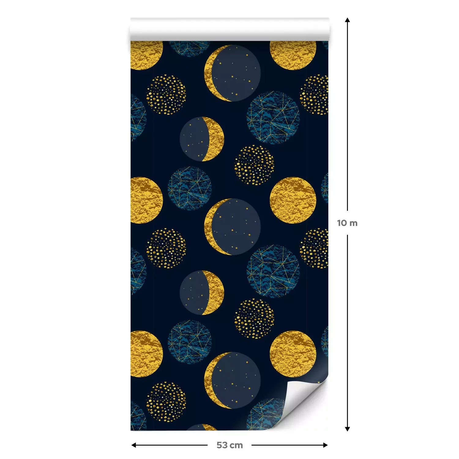 Eine Standard-Tapetenrolle hat die Maße 0,53 m x 10 m und deckt eine Wandfläche von etwa 5 m² ab.