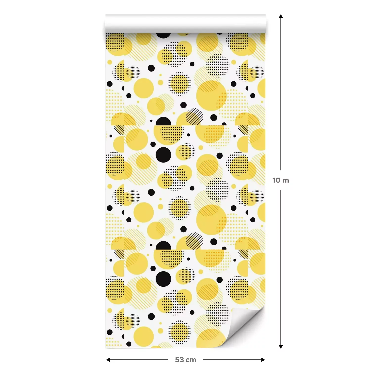 Eine Standard-Tapetenrolle hat die Maße 0,53 m x 10 m und deckt eine Wandfläche von etwa 5 m² ab.