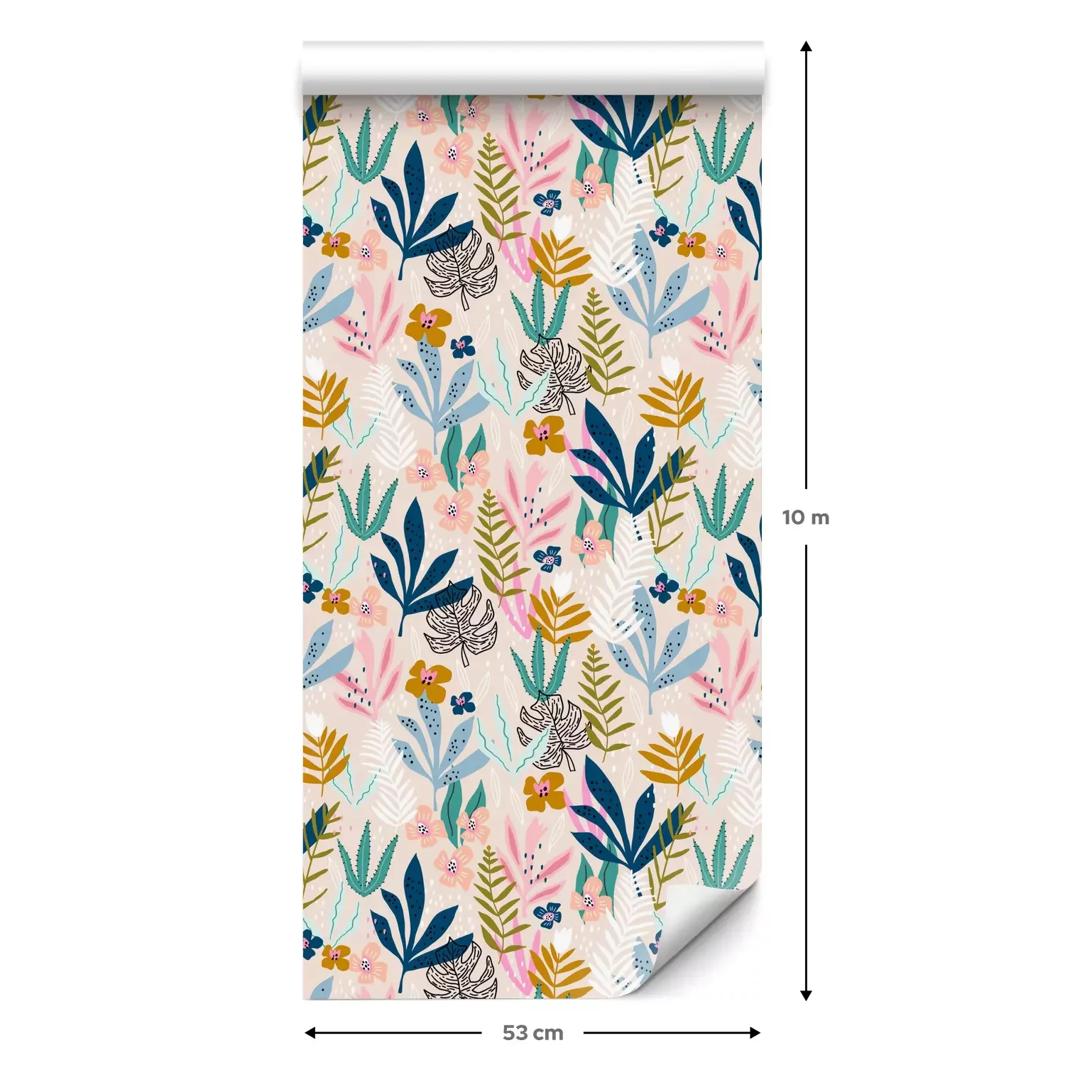Eine Standard-Tapetenrolle hat die Maße 0,53 m x 10 m und deckt eine Wandfläche von etwa 5 m² ab.