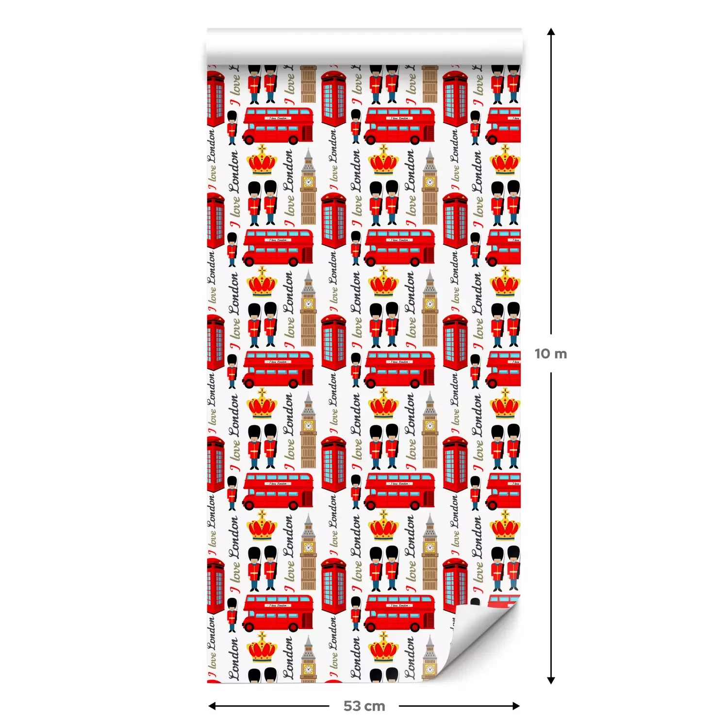 Eine Standard-Tapetenrolle hat die Maße 0,53 m x 10 m und deckt eine Wandfläche von etwa 5 m² ab.
