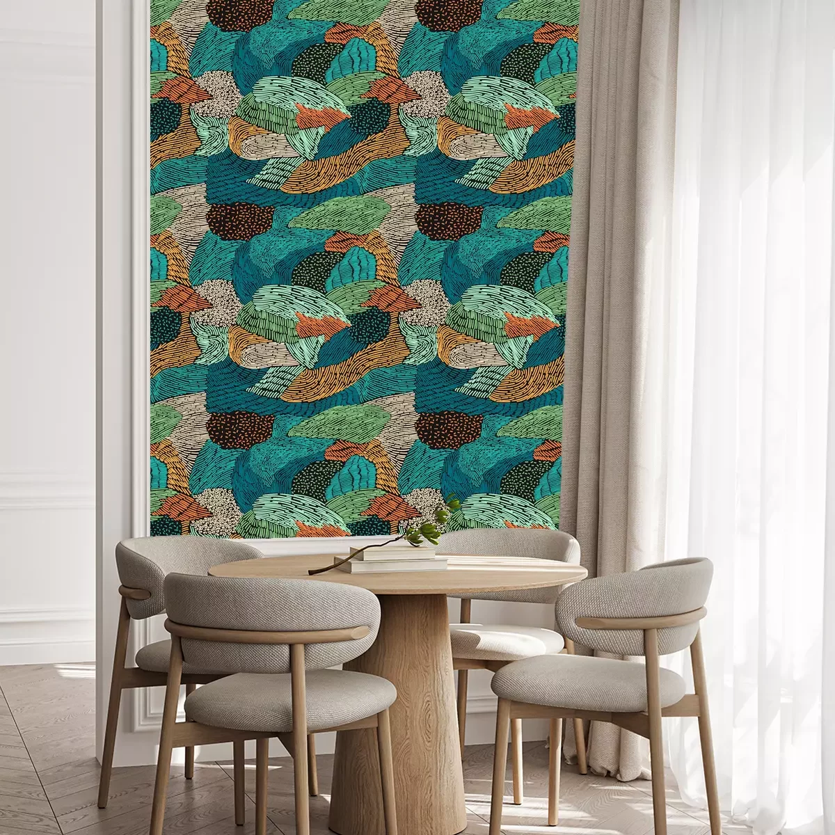 Die Tapete zeichnet sich durch ein sich wiederholendes Muster aus, das ein rhythmisches Design erzeugt. Als Trägermaterial wird hier Vlies verwendet. Sie wird in Rollen mit den standardisierten Maßen 10 m x 53 cm verkauft. Eine Fototapete ist eine spezielle Art von Tapete, auf der ein Foto oder ein realistisches Bild (z.B. eine Landschaft oder eine Stadtansicht) großflächig aufgedruckt ist. Sie wird nicht in Standardrollen verkauft, sondern in Bahnen, die auf die Abmessungen einer bestimmten Wand zugeschnitten sind. So passt das gesamte Motiv perfekt darauf. Zudem können Sie das Material wählen, aus dem die Tapete hergestellt werden soll.
