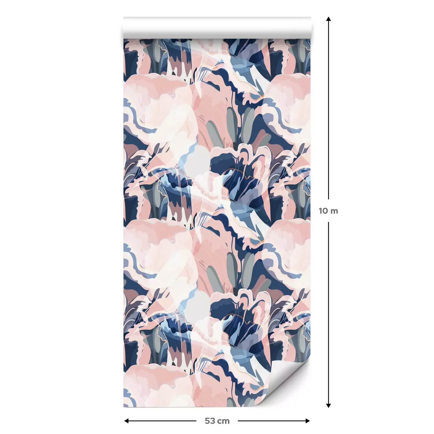 Eine Standard-Tapetenrolle hat die Maße 0,53 m x 10 m und deckt eine Wandfläche von etwa 5 m² ab.