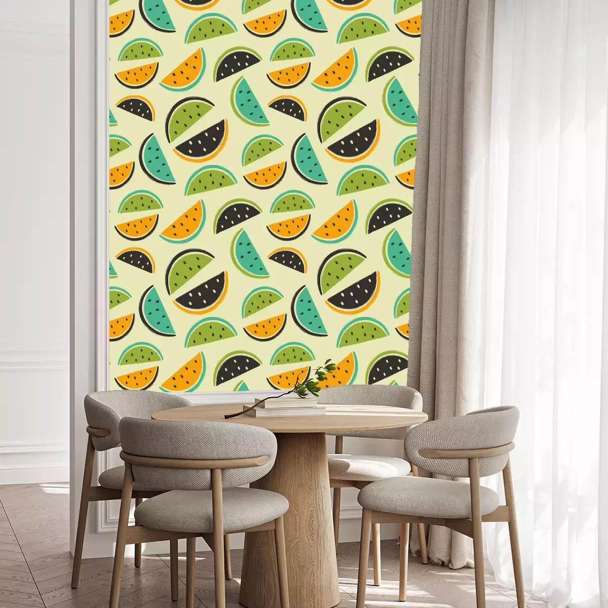 Die Tapete zeichnet sich durch ein sich wiederholendes Muster aus, das ein rhythmisches Design erzeugt. Als Trägermaterial wird hier Vlies verwendet. Sie wird in Rollen mit den standardisierten Maßen 10 m x 53 cm verkauft. Eine Fototapete ist eine spezielle Art von Tapete, auf der ein Foto oder ein realistisches Bild (z.B. eine Landschaft oder eine Stadtansicht) großflächig aufgedruckt ist. Sie wird nicht in Standardrollen verkauft, sondern in Bahnen, die auf die Abmessungen einer bestimmten Wand zugeschnitten sind. So passt das gesamte Motiv perfekt darauf. Zudem können Sie das Material wählen, aus dem die Tapete hergestellt werden soll.