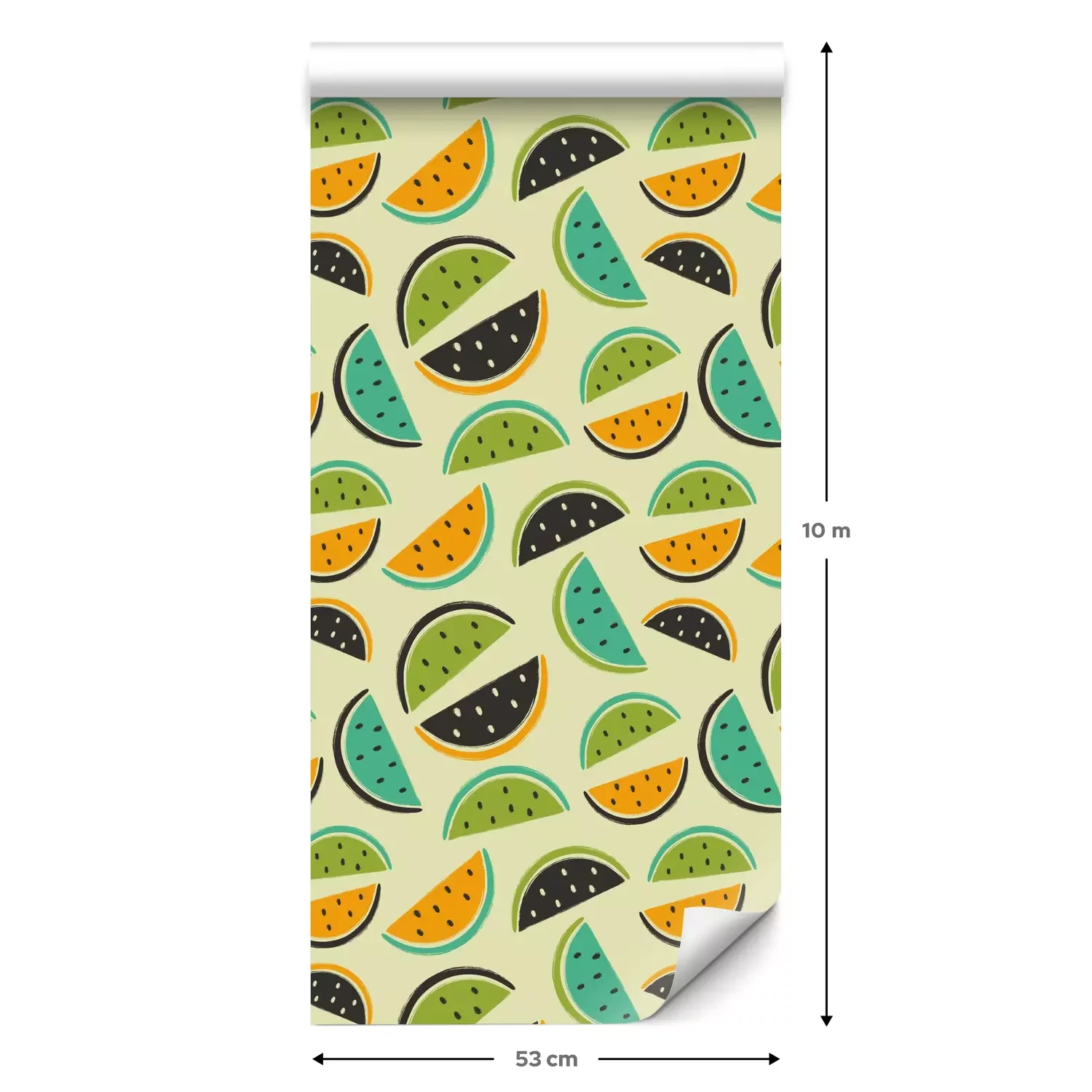 Eine Standard-Tapetenrolle hat die Maße 0,53 m x 10 m und deckt eine Wandfläche von etwa 5 m² ab.