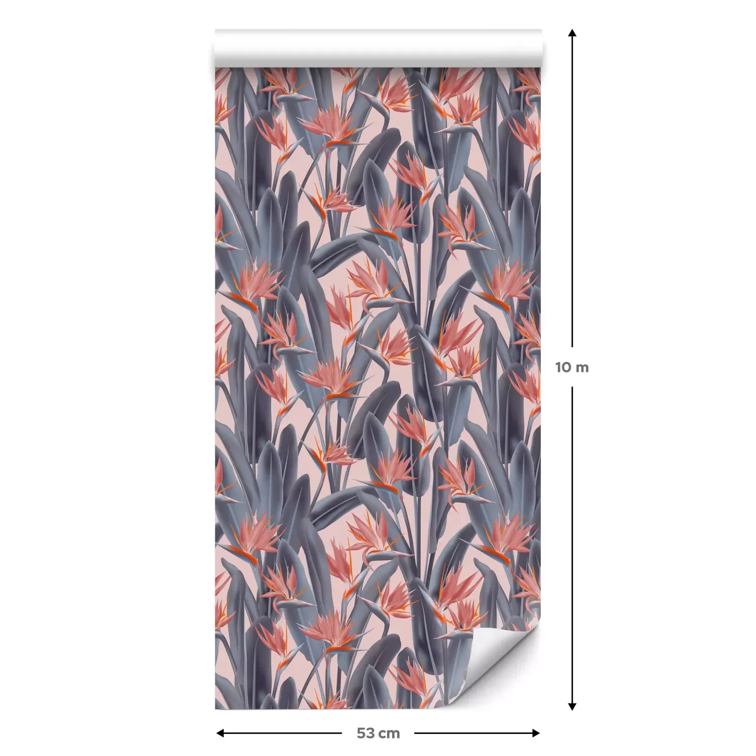 Eine Standard-Tapetenrolle hat die Maße 0,53 m x 10 m und deckt eine Wandfläche von etwa 5 m² ab.
