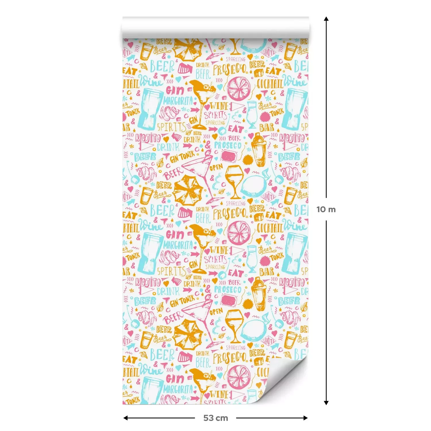 Eine Standard-Tapetenrolle hat die Maße 0,53 m x 10 m und deckt eine Wandfläche von etwa 5 m² ab.