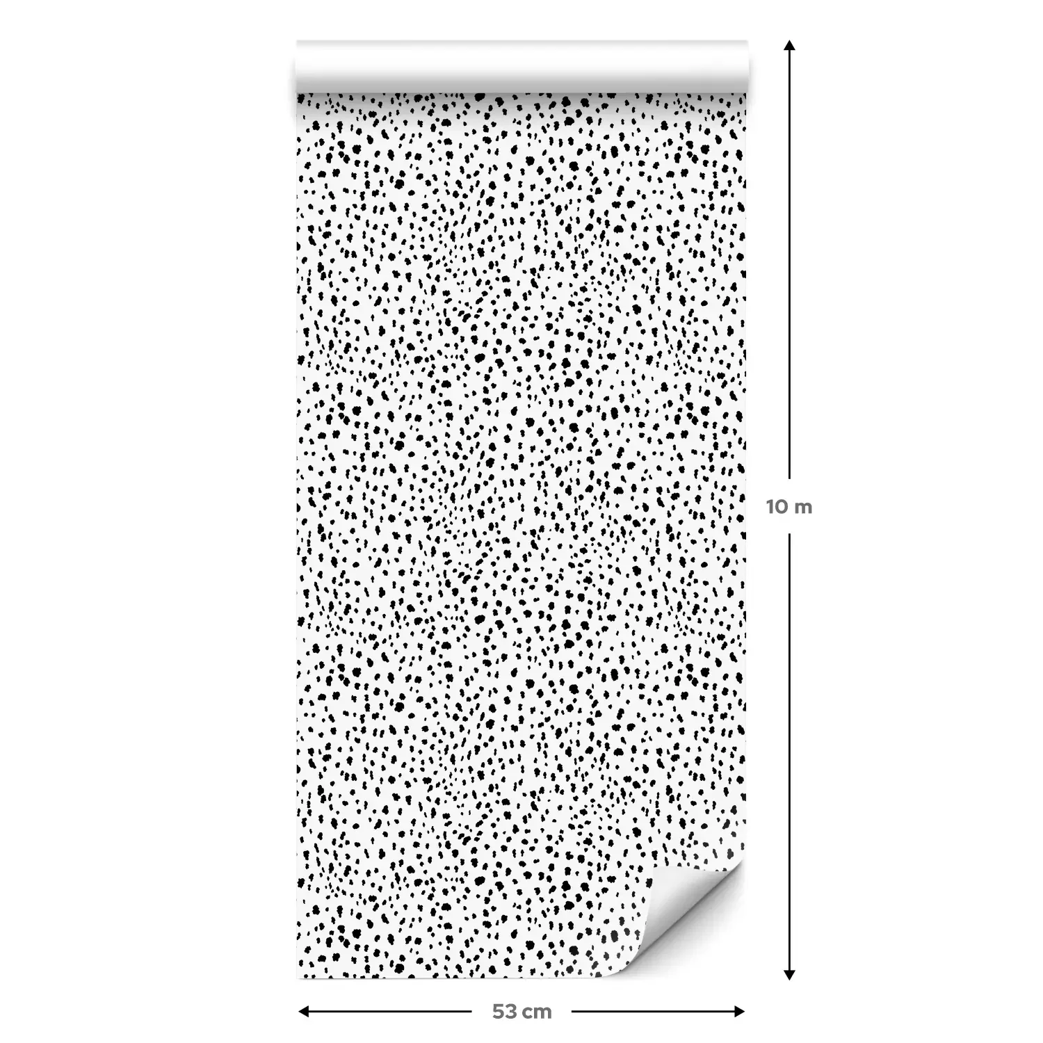 Eine Standard-Tapetenrolle hat die Maße 0,53 m x 10 m und deckt eine Wandfläche von etwa 5 m² ab.