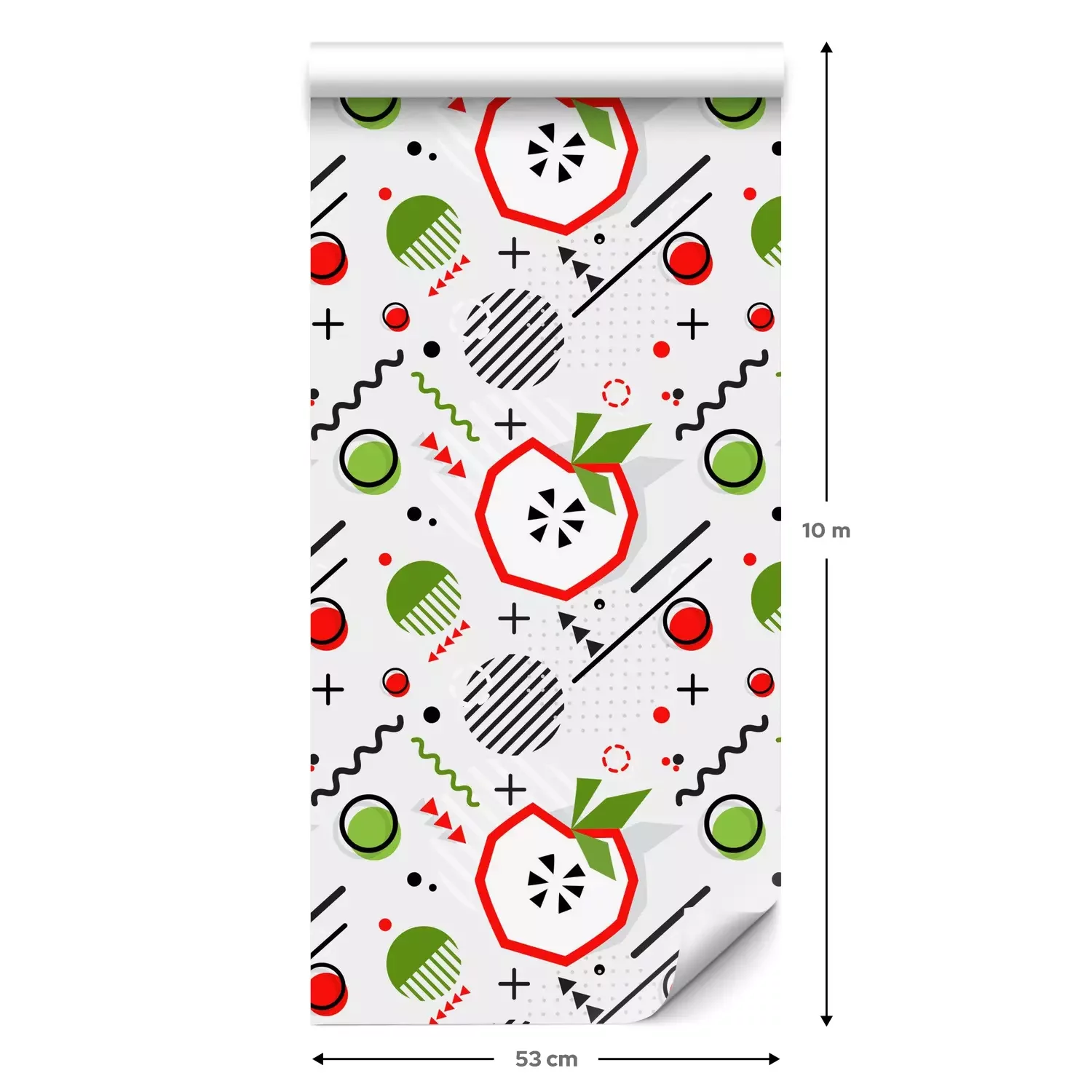 Eine Standard-Tapetenrolle hat die Maße 0,53 m x 10 m und deckt eine Wandfläche von etwa 5 m² ab.