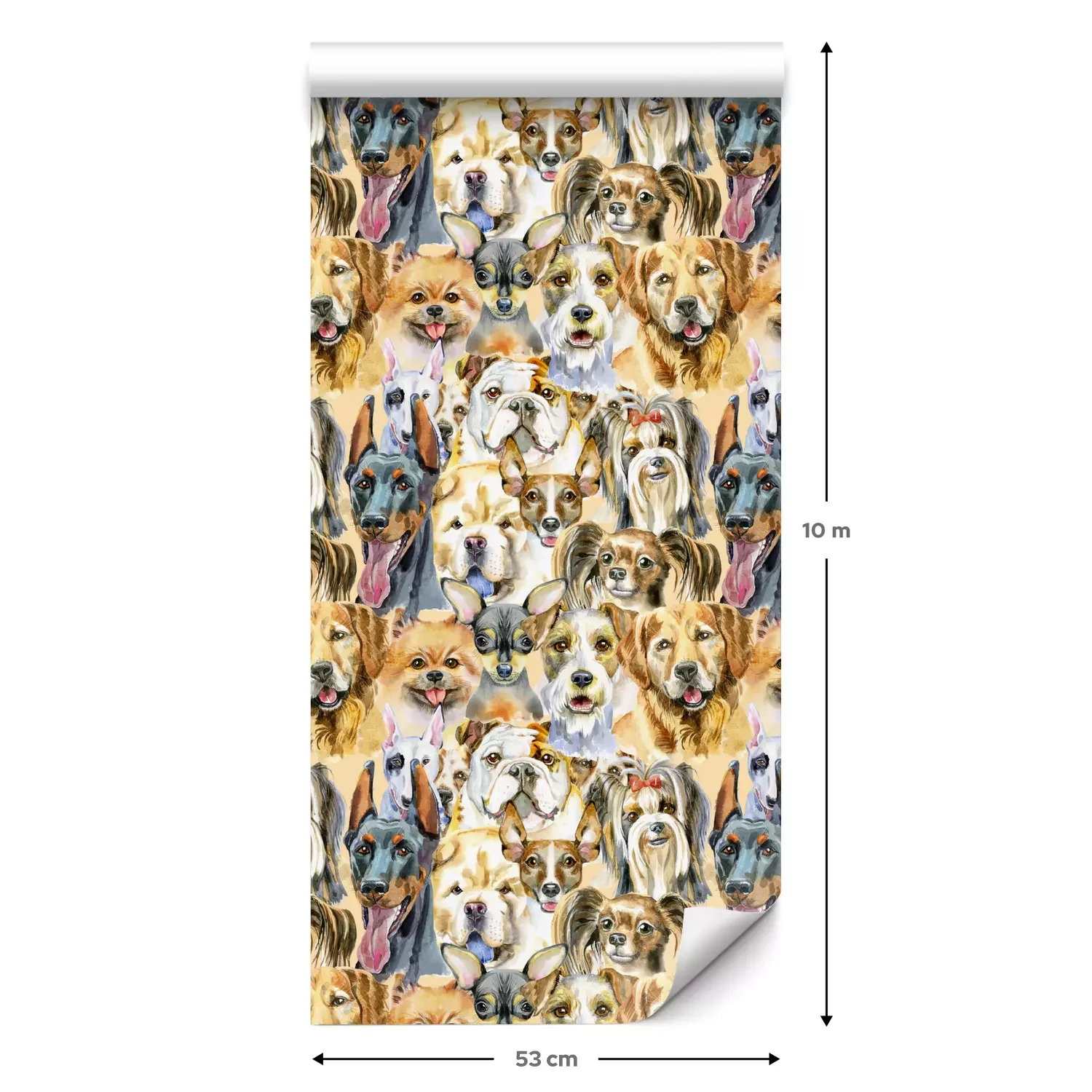 Eine Standard-Tapetenrolle hat die Maße 0,53 m x 10 m und deckt eine Wandfläche von etwa 5 m² ab.