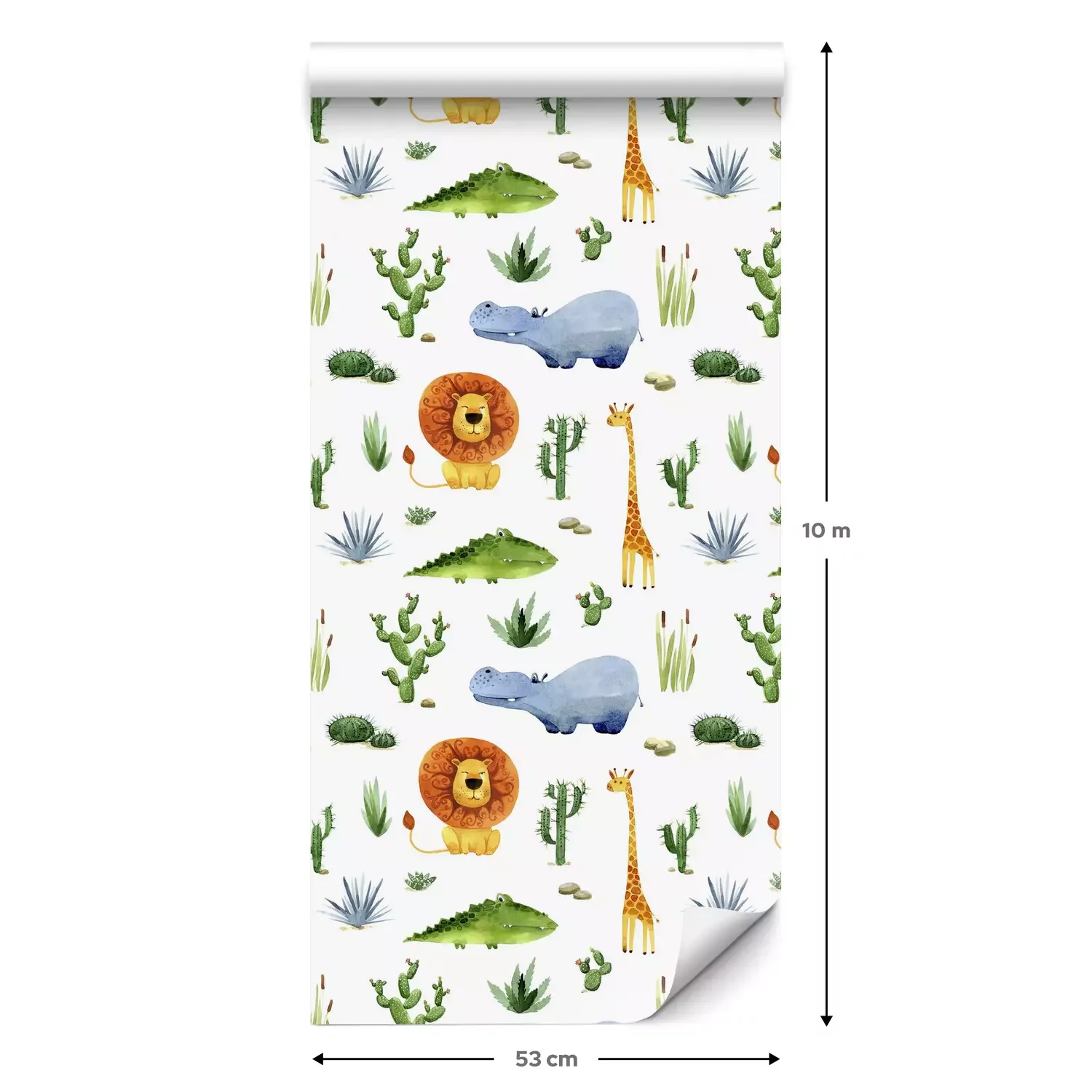 Eine Standard-Tapetenrolle hat die Maße 0,53 m x 10 m und deckt eine Wandfläche von etwa 5 m² ab.