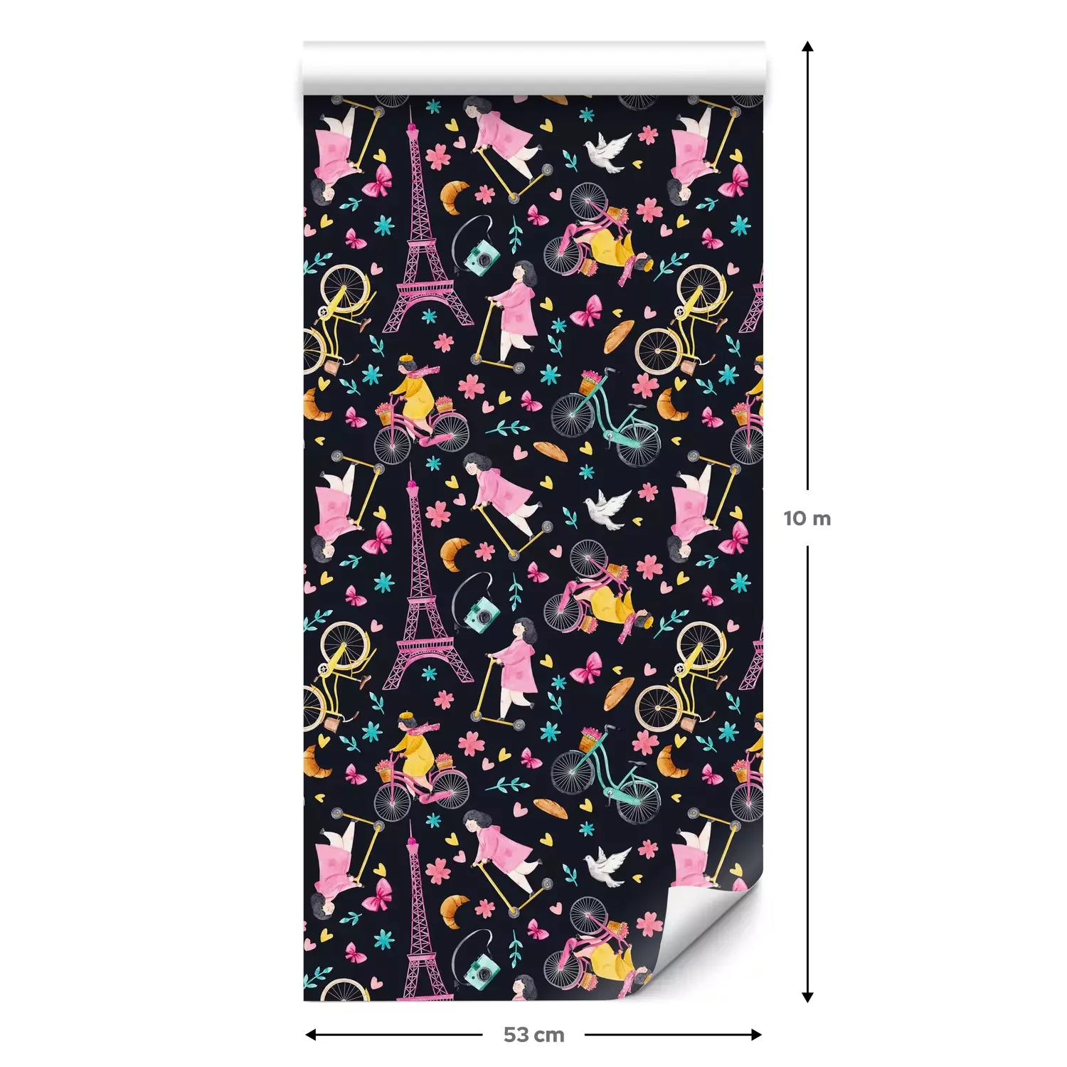 Eine Standard-Tapetenrolle hat die Maße 0,53 m x 10 m und deckt eine Wandfläche von etwa 5 m² ab.