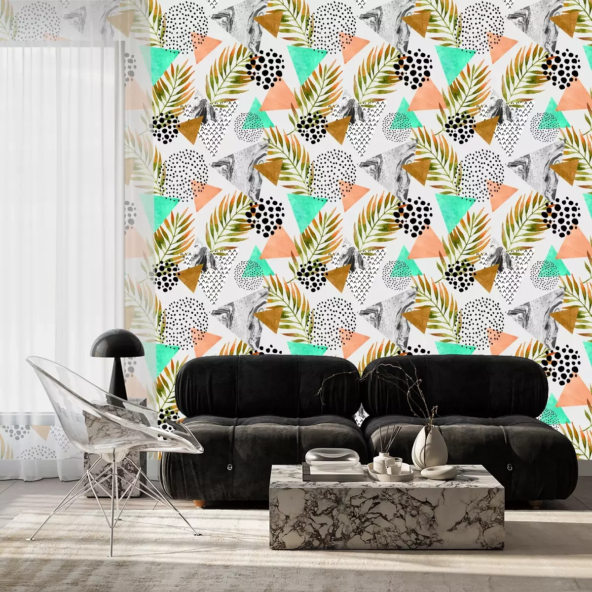 Farbenfrohes Muster mit PalmenTapete